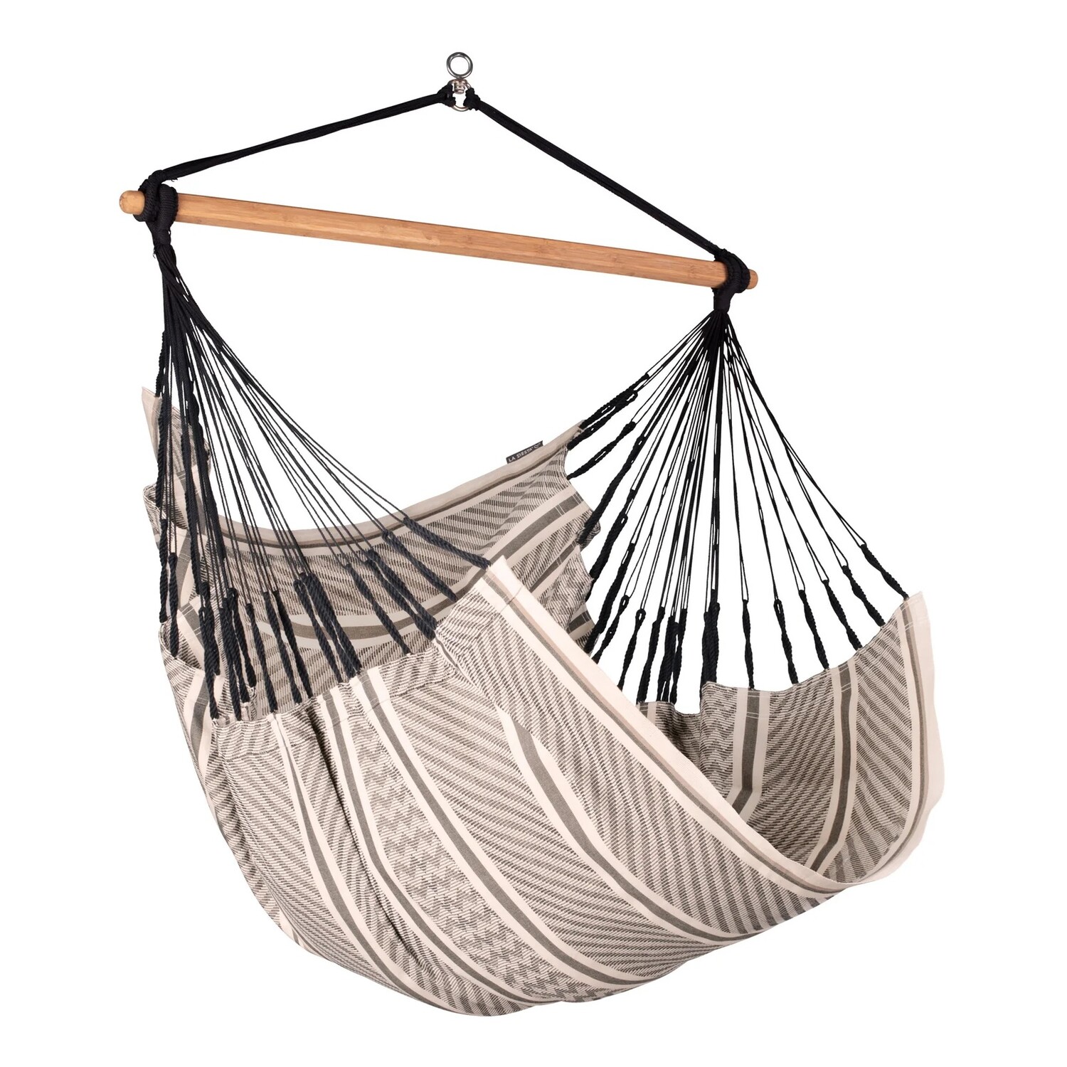 The LA SIESTA Habana Hammock Chair with Flexmount Suspension Kit offers a complete hanging chair solution for comfortable indoor relaxation. Woven from GOTS-certified organic cotton, the chair provides softness while the spreader bar keeps the seat open for a wide, stable sitting position.