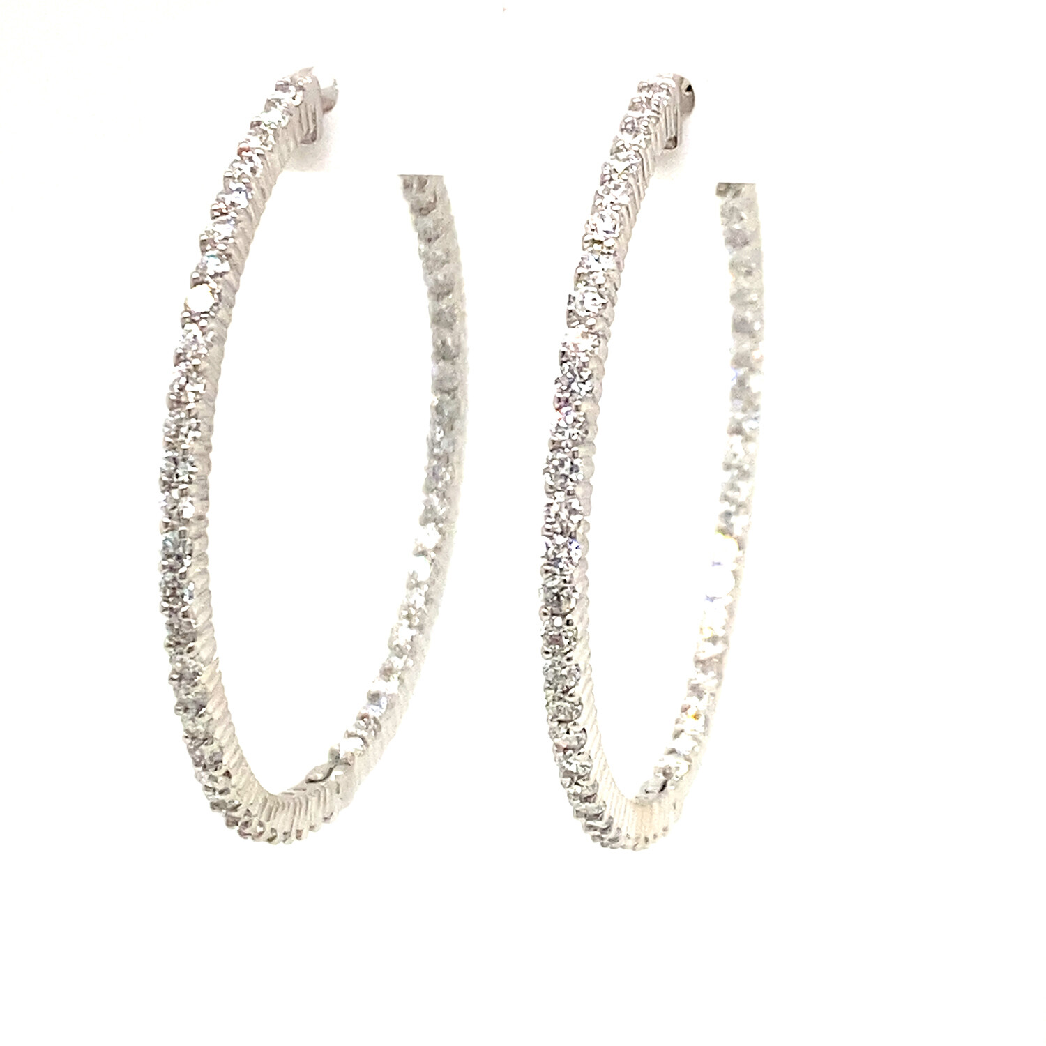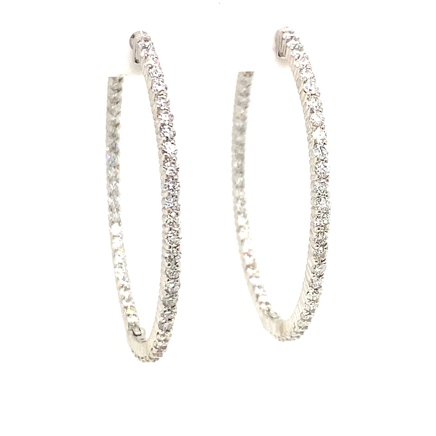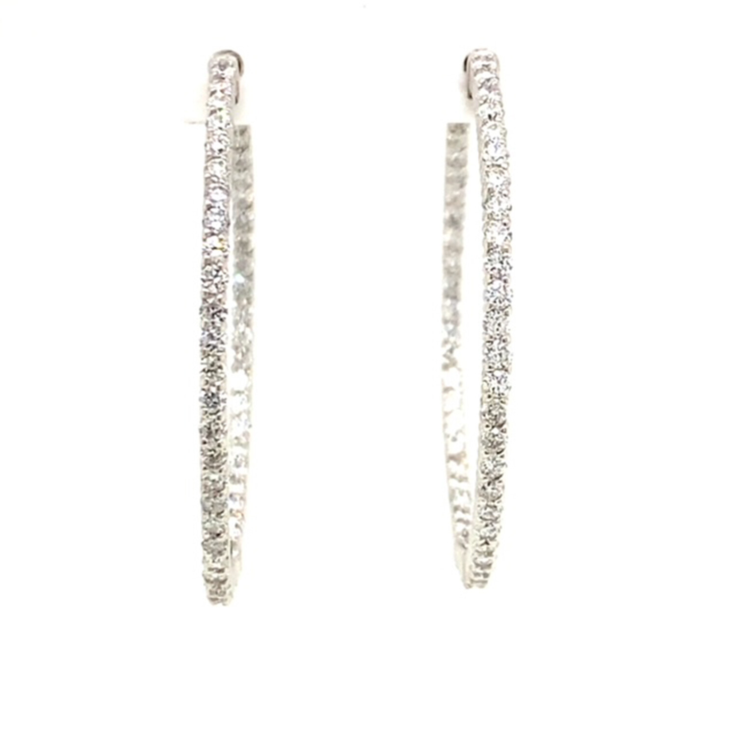 14k White Gold Eco-Friendly Large Slim Hoop Diamond Earrings // New