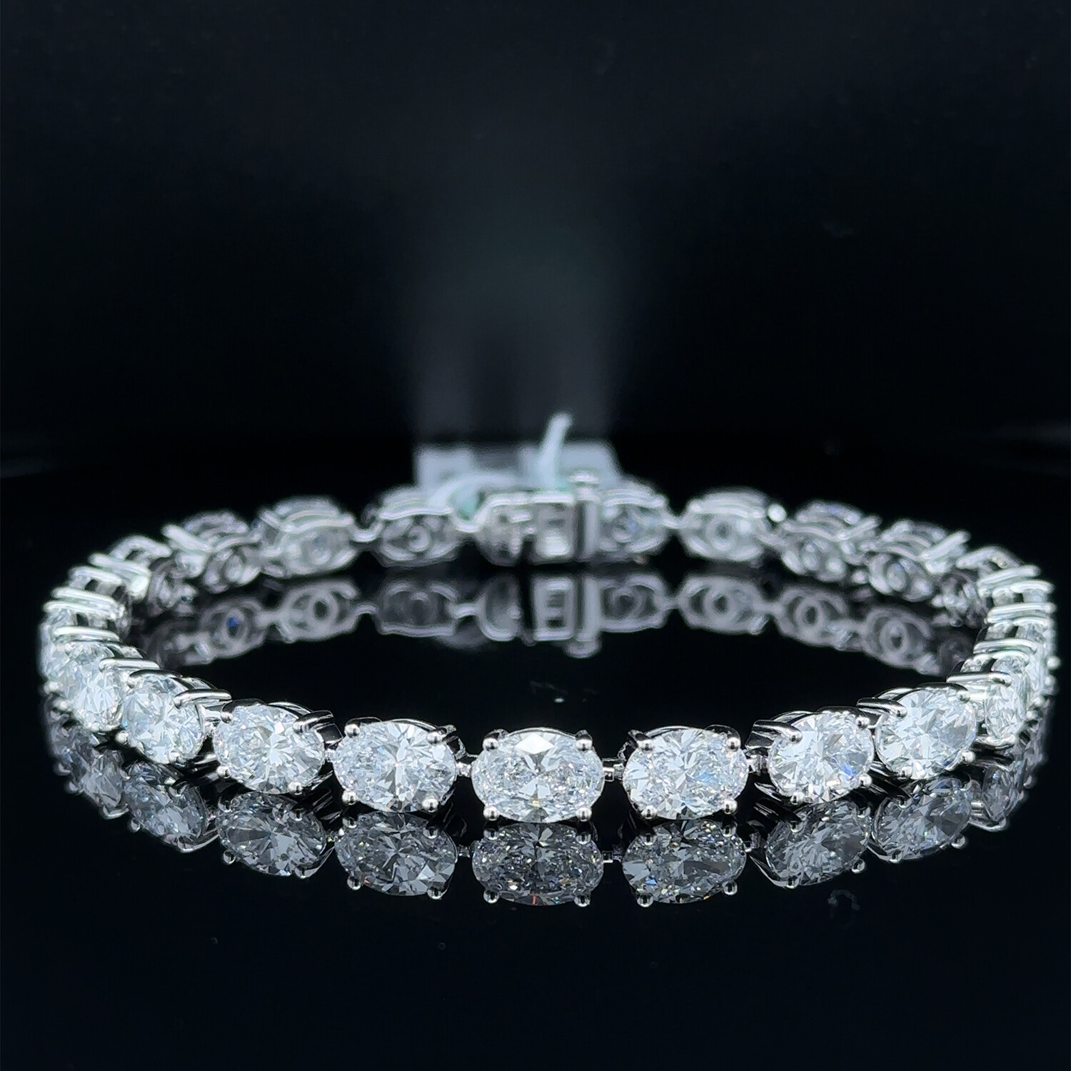 14k White Gold Eco-Friendly Oval Tennis Diamond Bracelet // 7" // New