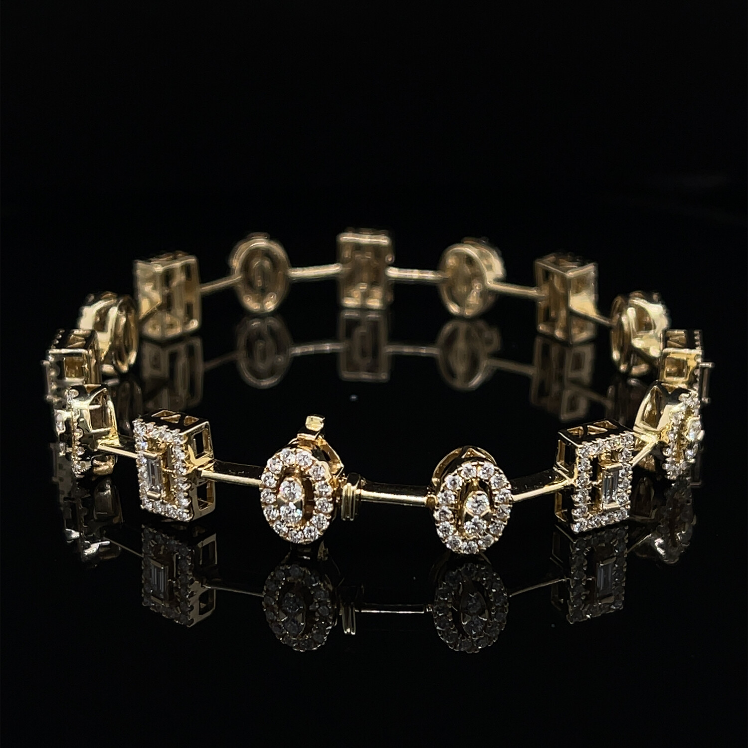 14k Yellow Gold Diamond Mixed Shape Bracelet // 7" // New