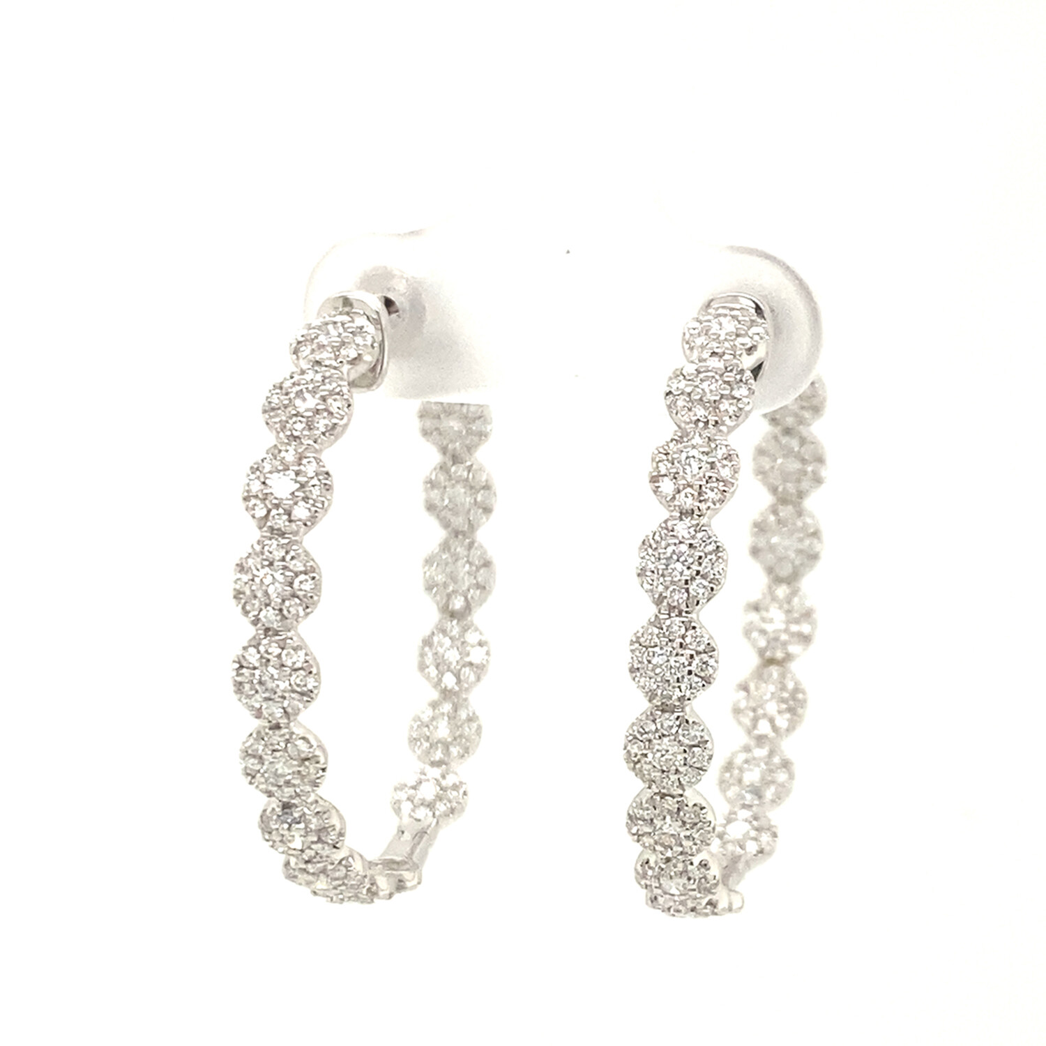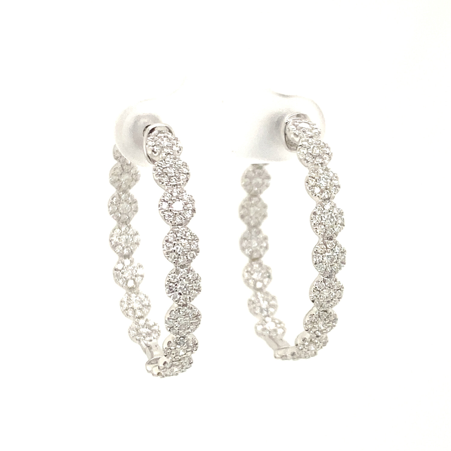 18k White Gold Eco-Friendly Diamond Cluster Hoop Earrings // New