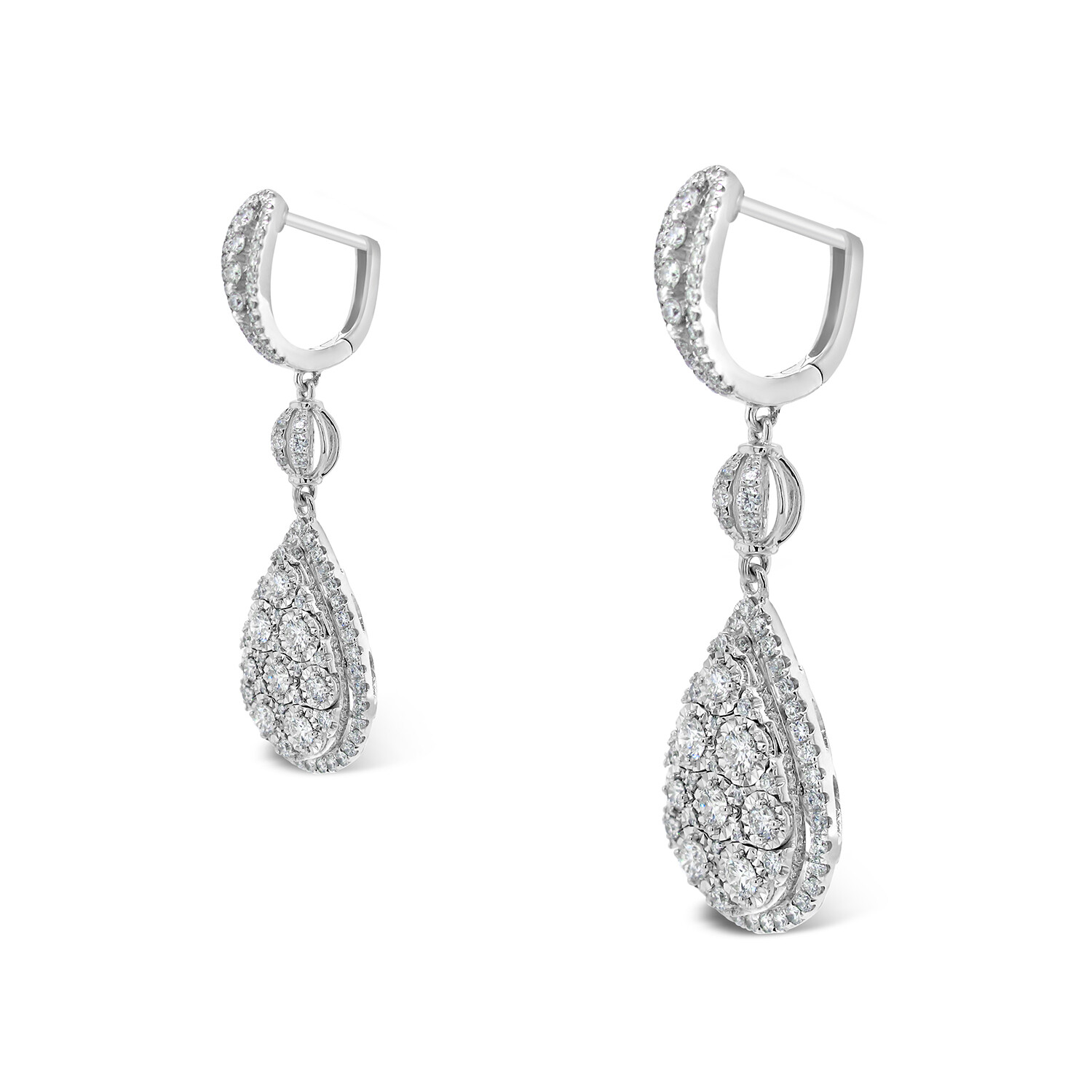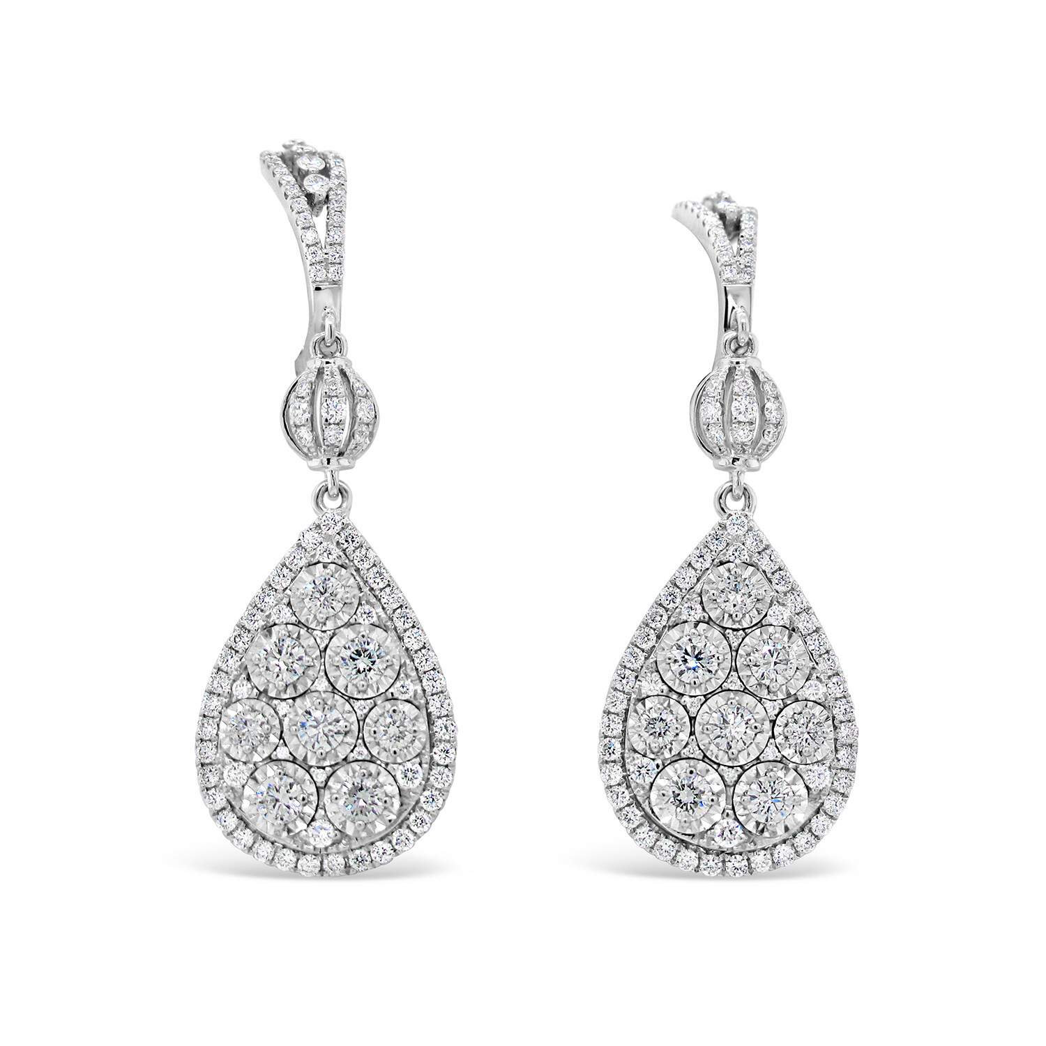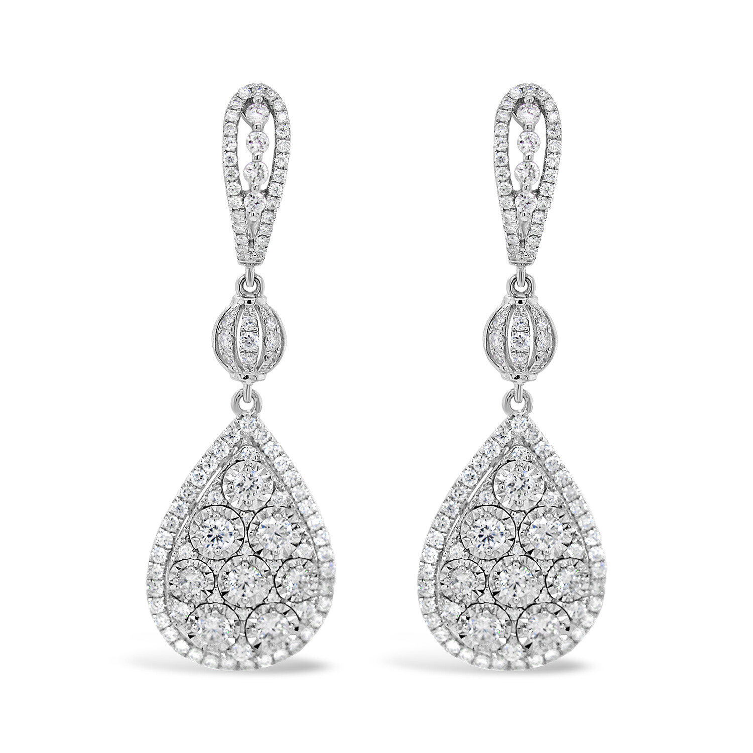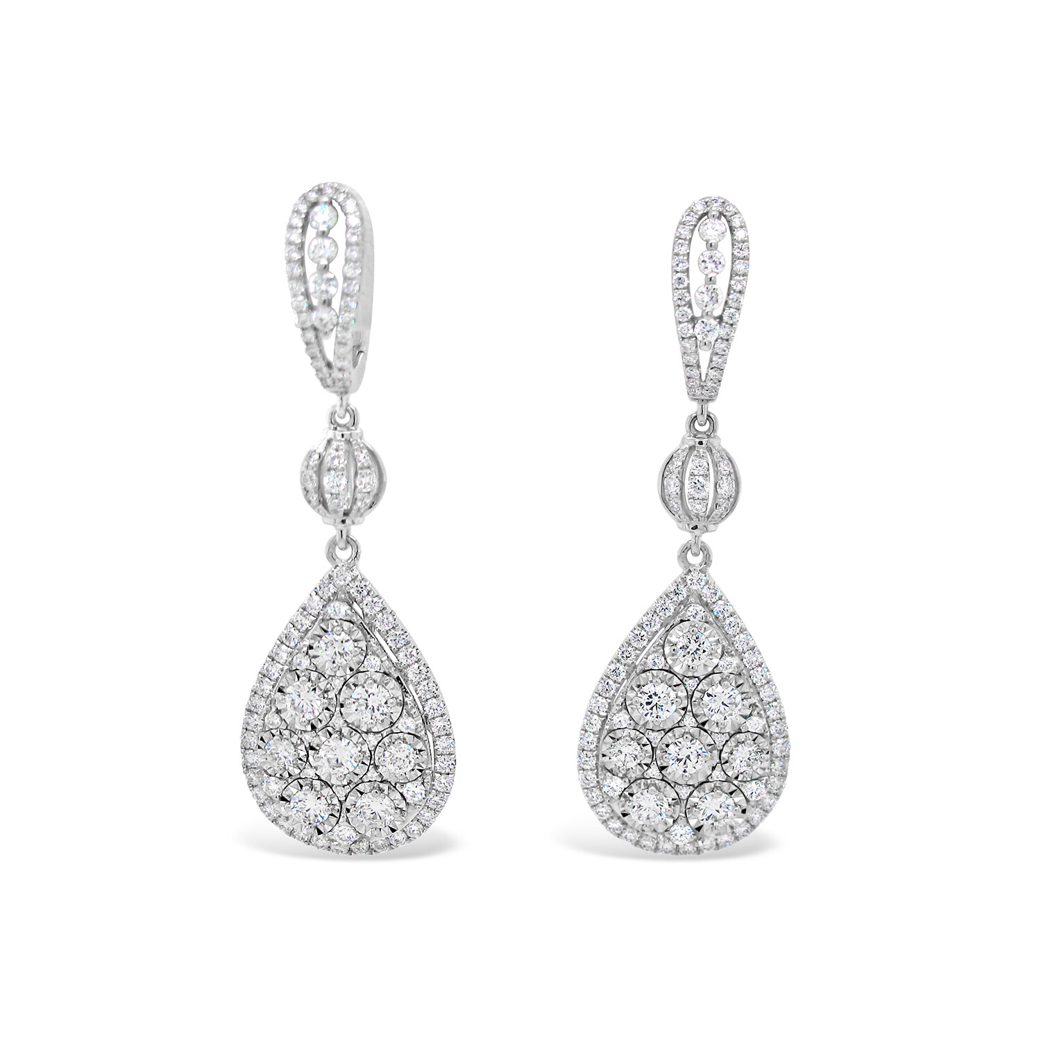 18k White Gold Eco-Friendly Diamond Pear Halo Cluster Dangle Earrings // New