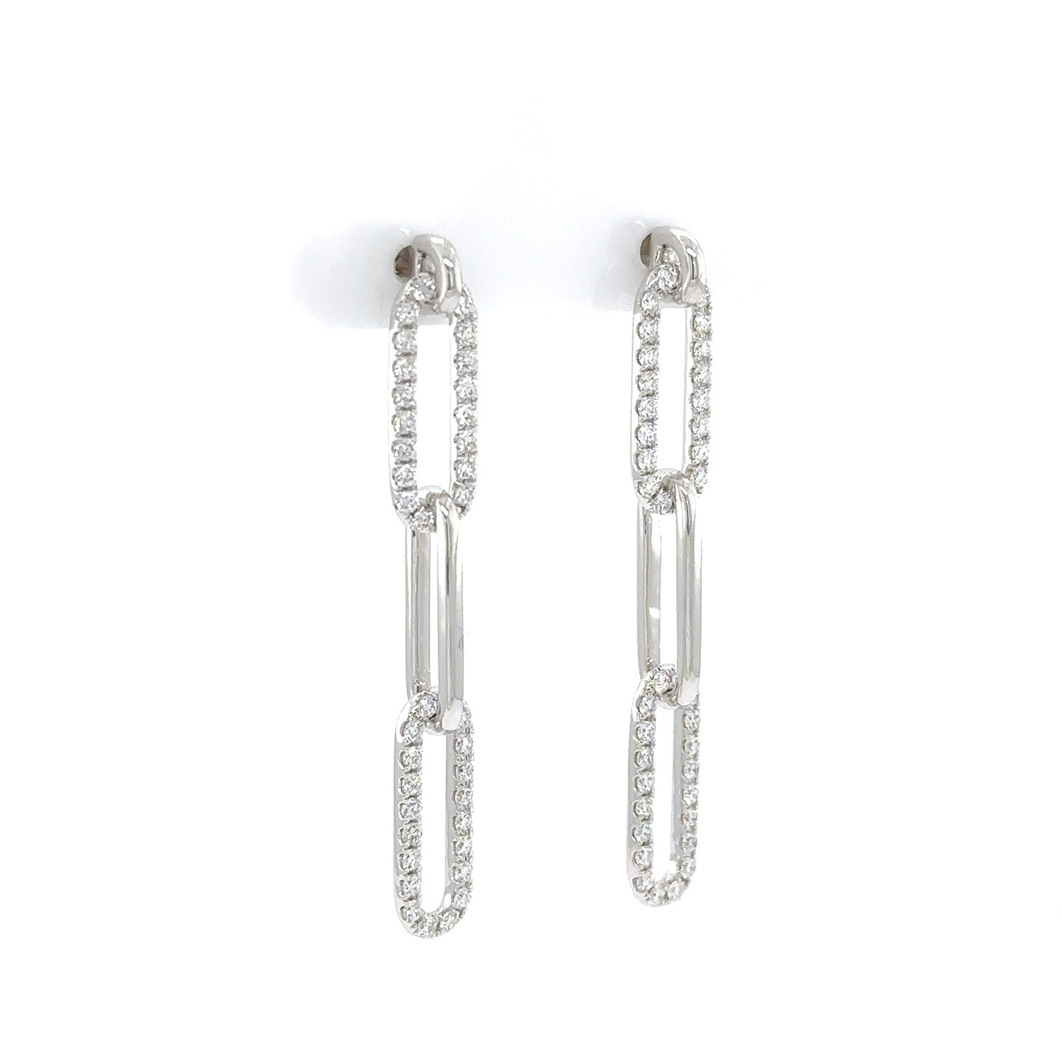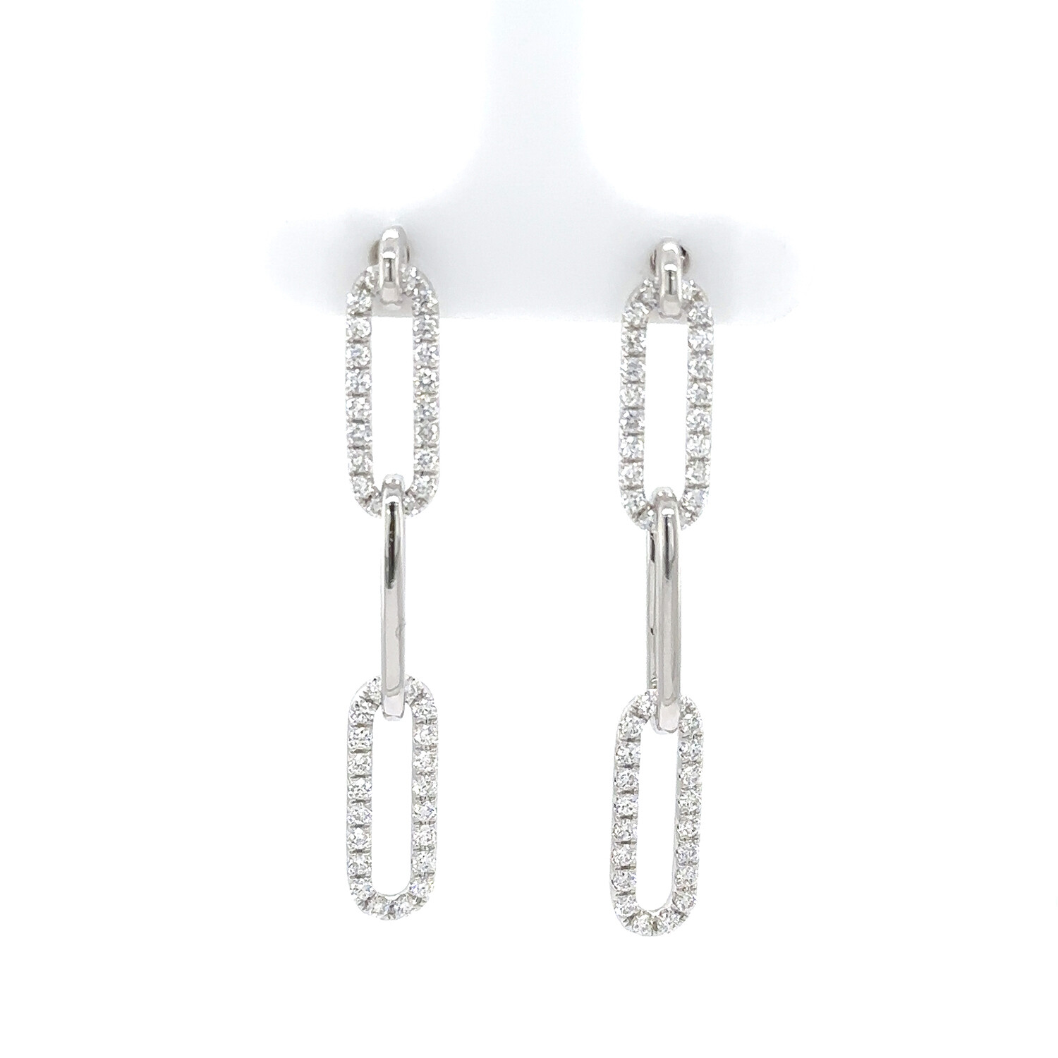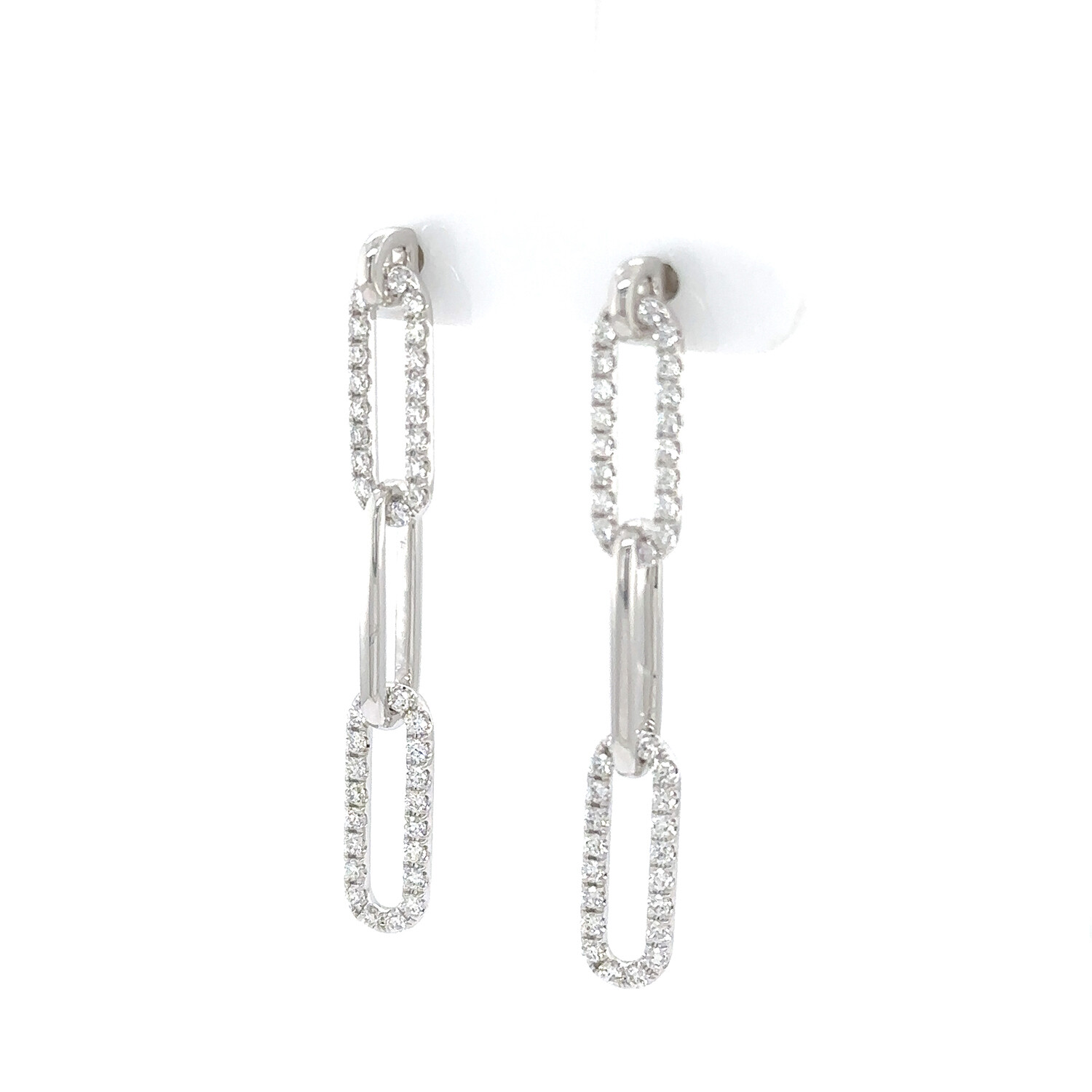 18k White Gold Eco-Friendly Paper Clip Diamond Dangle Earrings // New