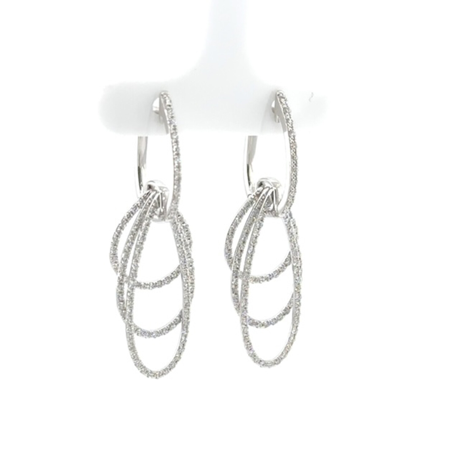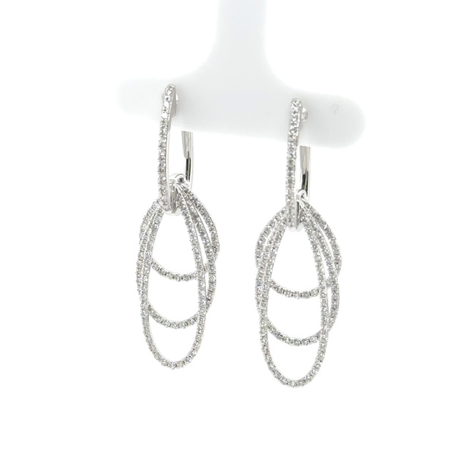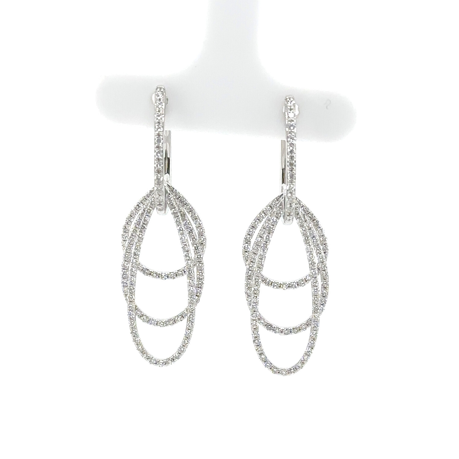 18k White Gold Eco-Friendly Three Row Diamond Dangle Earrings // New