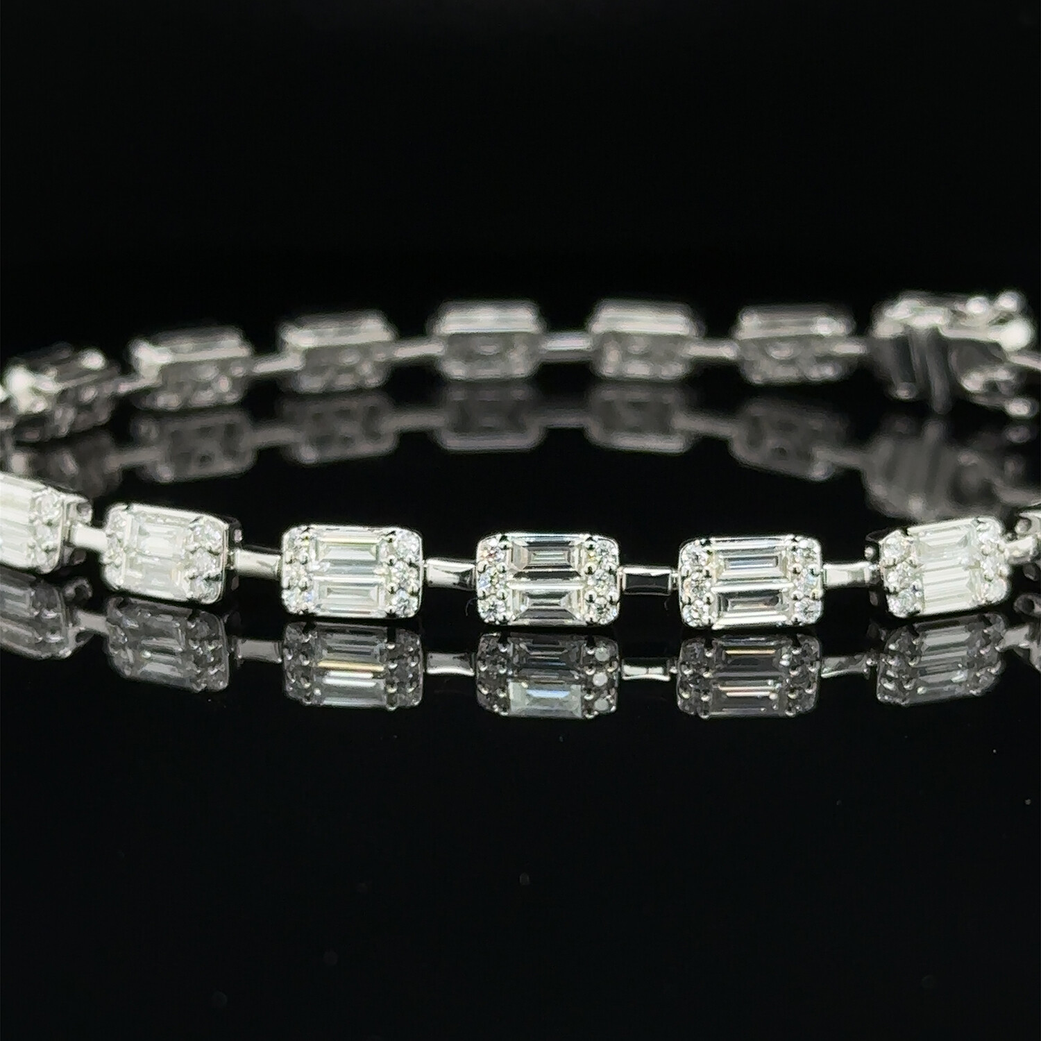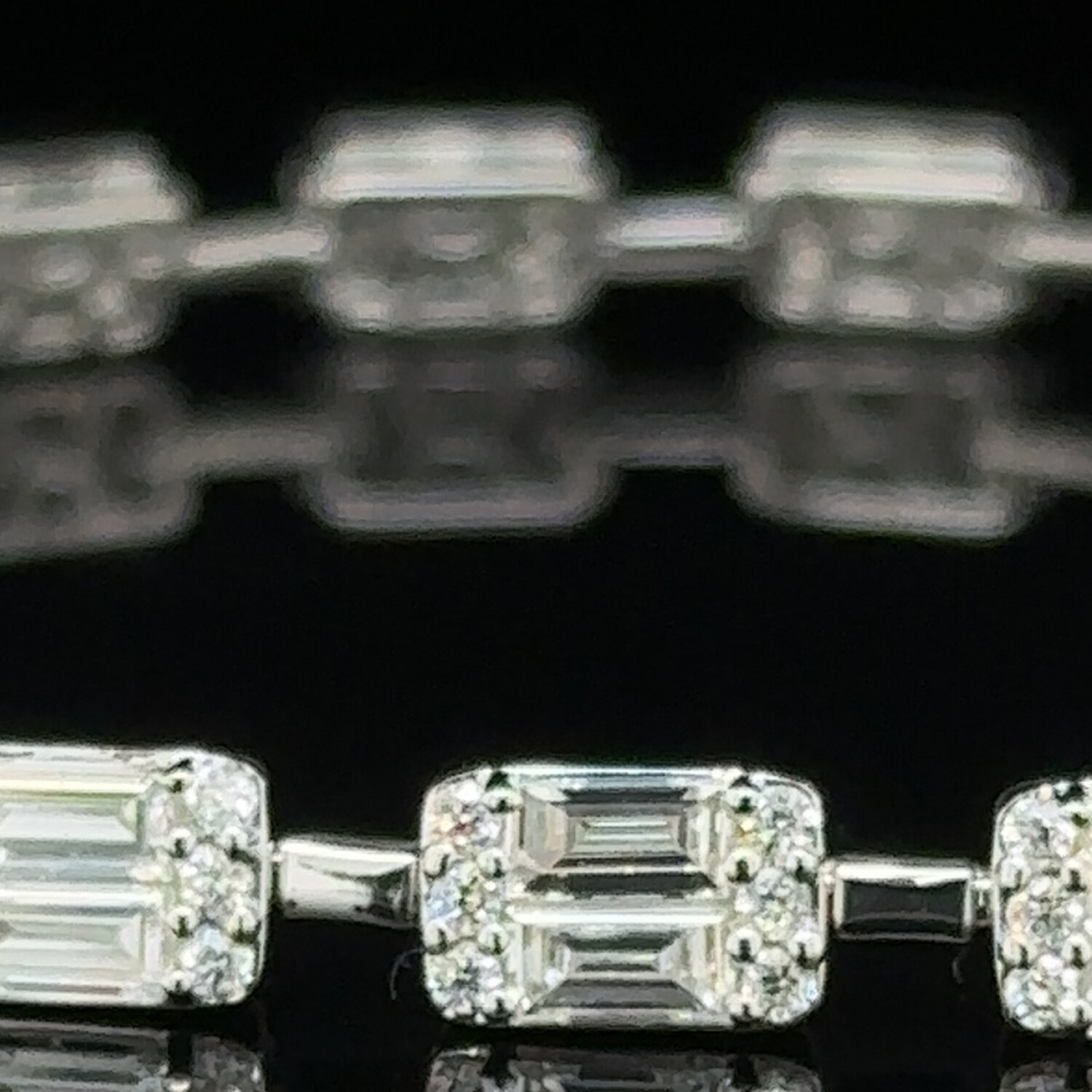 18k White Gold Emerald Illusion Diamond Baguette Bracelet // 7" // New