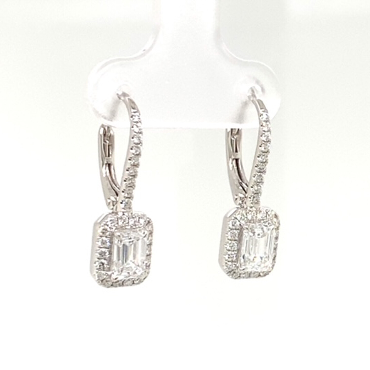 18k White Gold Lab-Grown Emerald-Cut Diamond Halo Drop Earrings // New