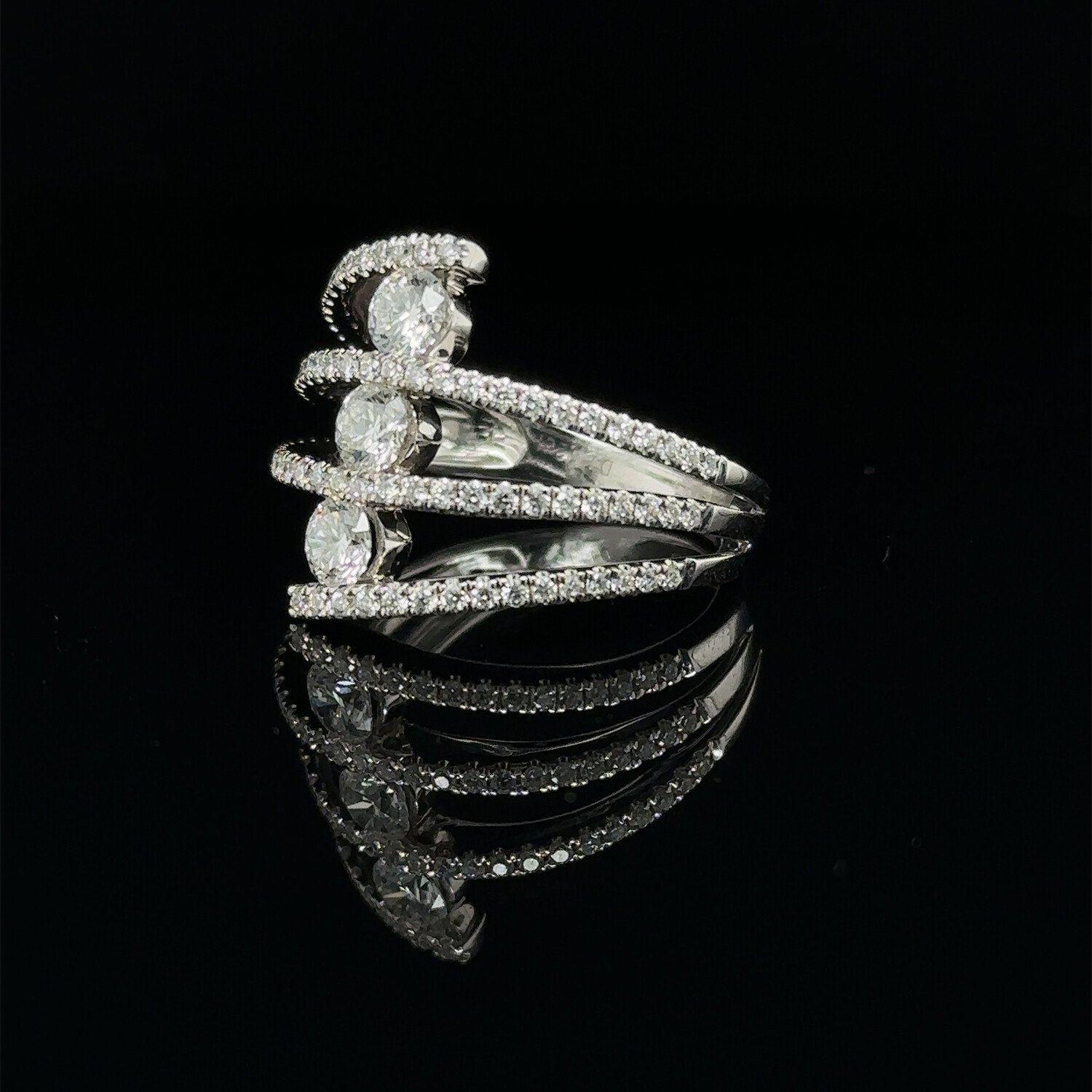 18k White Gold Triple Eco-Friendly Diamond Cocktail Ring // Ring Size: 6.5 // New