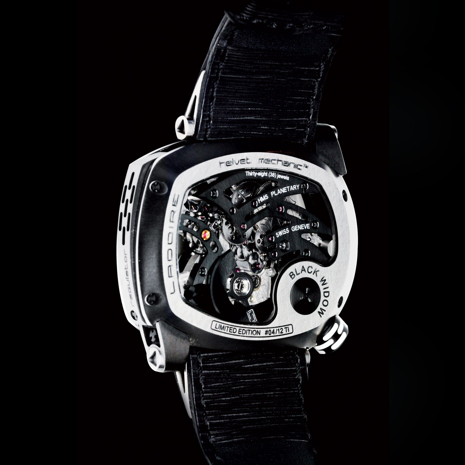 Be seduced by the dark magic of the Black Widow (which will be conveniently hand-delivered to you via a Brink's Security truck). It's one of twelve in world and marked by its stunning detailing—this bewitching timepiece features the 38 jewel Ladoire manufacture-made Calvet/o2 movement, a finely crafted ergonomic strap, and cambered glare-proofed sapphire crystal. This timepiece was awarded the prize for "Watch Architecture" by a distinguished panel of judges assembled by Couture Time for its deconstructionist vision.