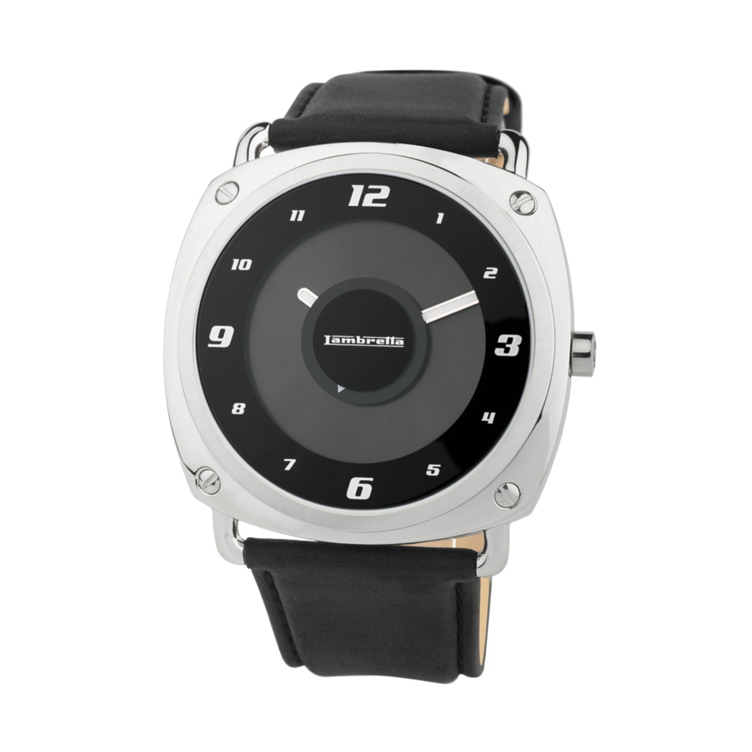The large retro Brunori Leather Quartz has a design with a dial features the RAF (Royal Air Force) target symbol in black with an all black case, and has a rotating disc instead of second hand. It comes with a clean and minimal strap in genuine vintage leather.