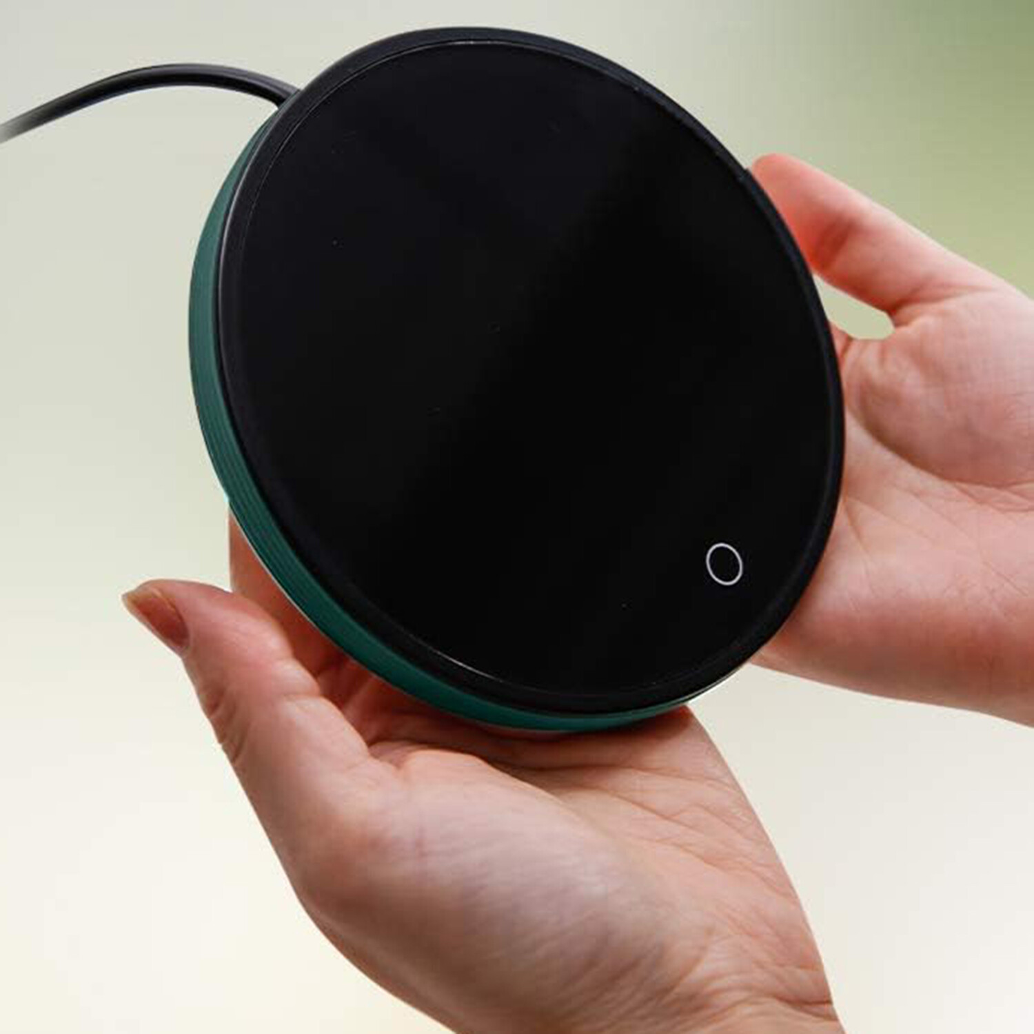 This sleek coffee cup warmer for your desk ensures your coffee stays warm all morning long. It's an 18-watt mug heater that maintains your drink at a delightful temperature of up to 140°F, perfect for any beverage. You can use it on various surfaces like your desk, night table, kitchen island, or living room side table, and it won't slide around. It's easy to use; just plug it in, turn it on, and place your mug on top.
