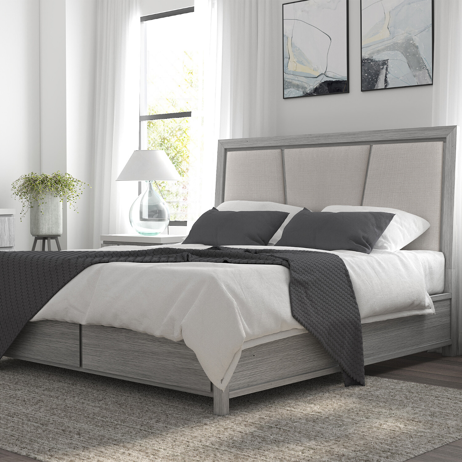 Presenting the magnificent king Upholstered Linen Bed, an ideal fusion of traditional and modern furniture design. The gray finish and wood base give the piece a beautiful and fashionable appearance, while the cushioned linen adds a touch of refinement. At the foot of the bed, two storage drawers offer convenience while accentuating the headboard's classic and modern design features.
