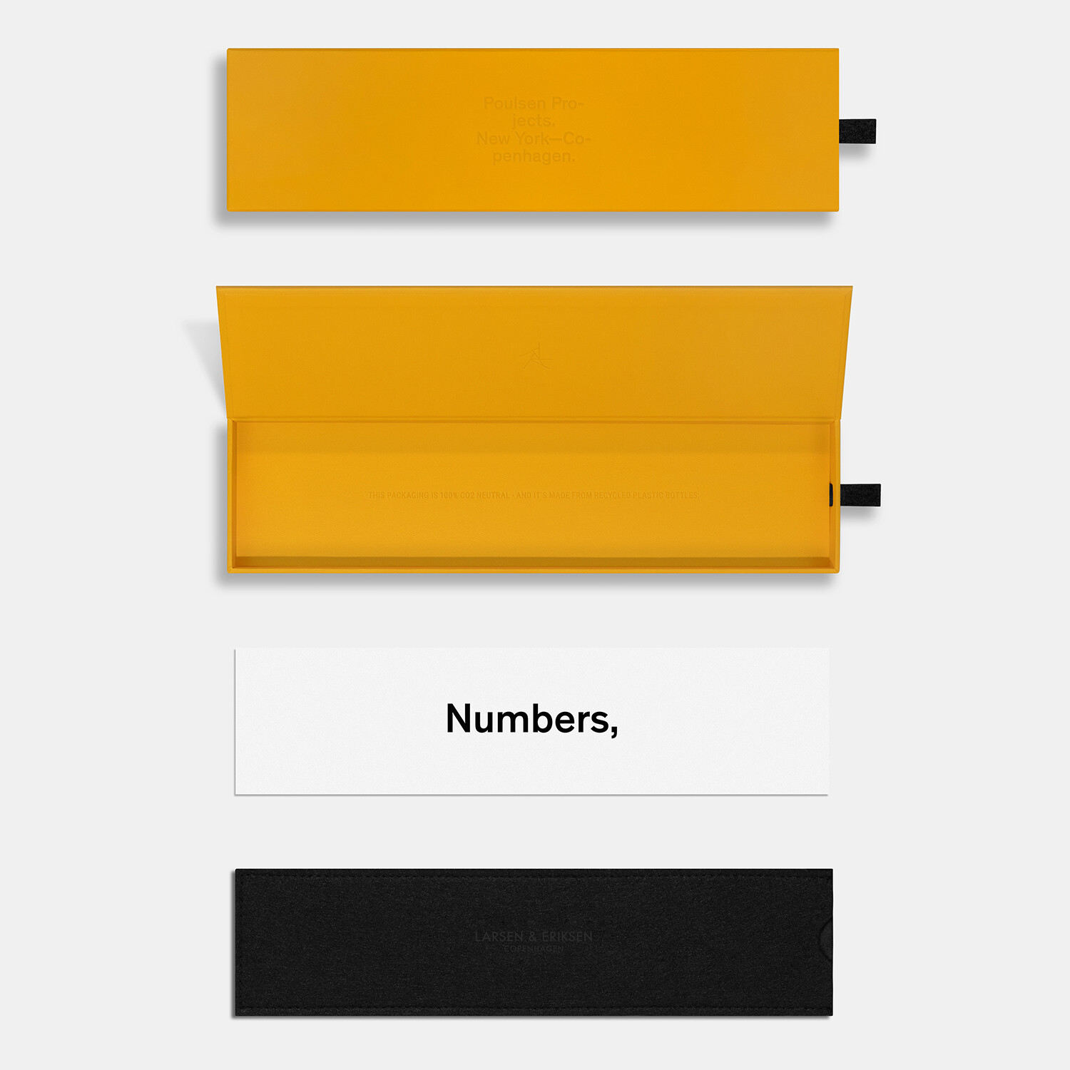 The collaborative output from an ongoing design process with New York-based Poulsen Projects, Larsen & Eriksen's Numbers series consists of eight designs, each uniquely observing and then bridging the juncture between time and written language. Number 8 turns the 12 hours into one rhythmic sentence. Linear, but also circular—a loop with no beginning and no end, an ode to the continuation of time.