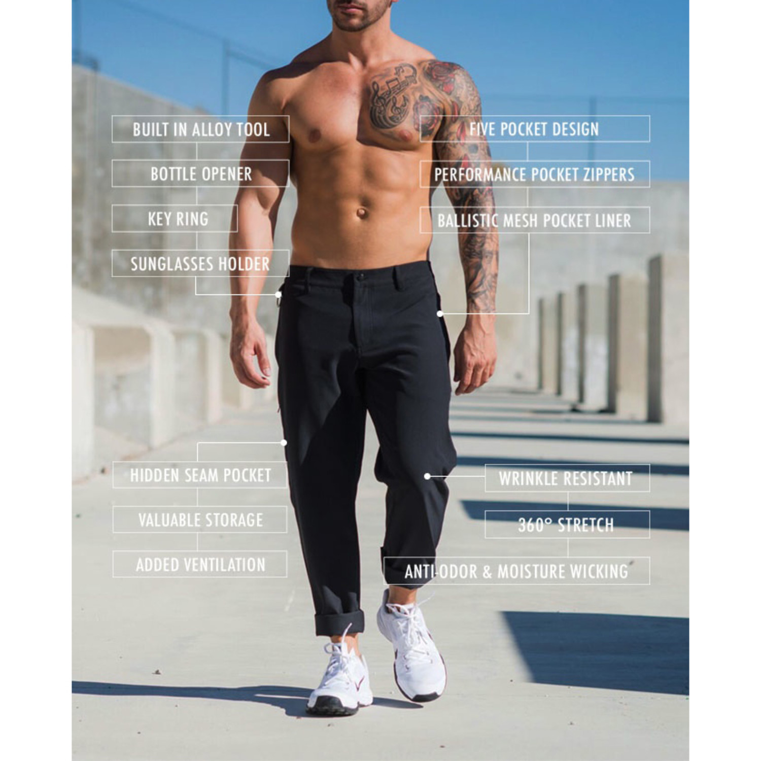— Technologically Advanced Fabric with 360 Degree Stretch, Anti-Odor, and Wrinkle Resistant Properties