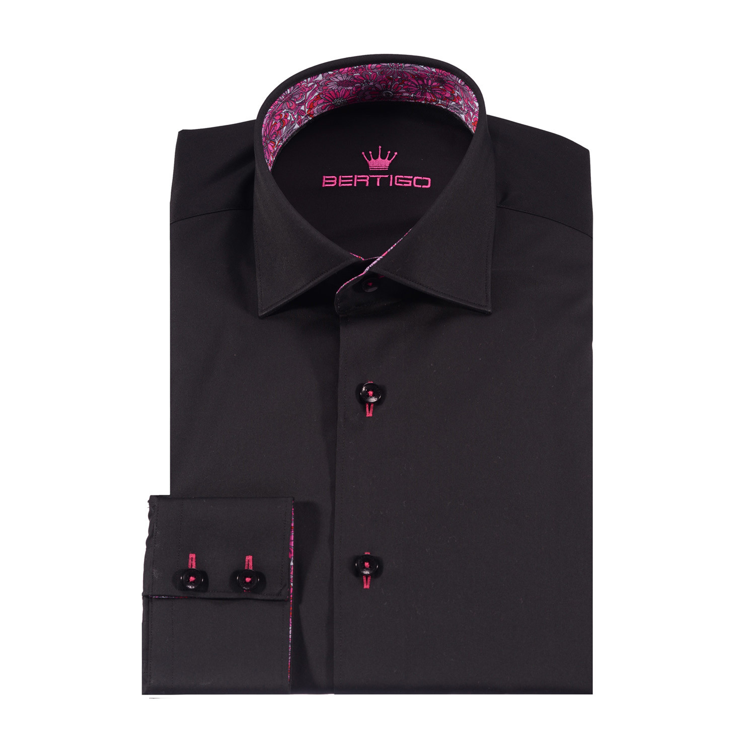 Bertigo // Terry Solid Button-Up Shirt + Floral Trim // Black
