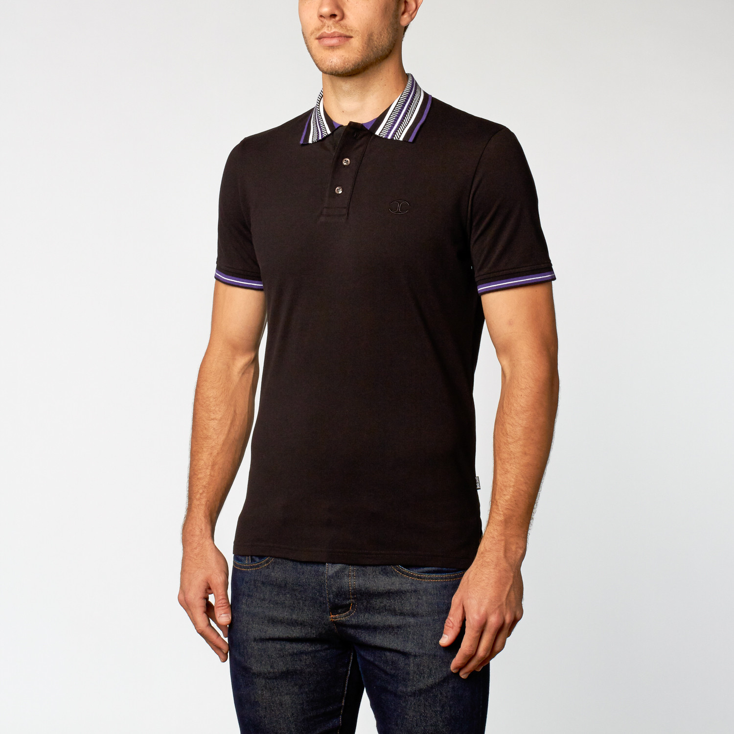 Just Cavalli // Short-Sleeve Polo // Black Multistripe Trim (M)