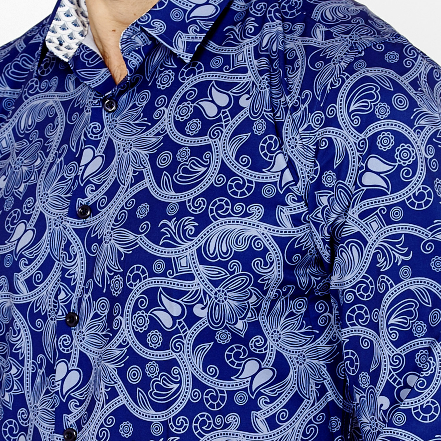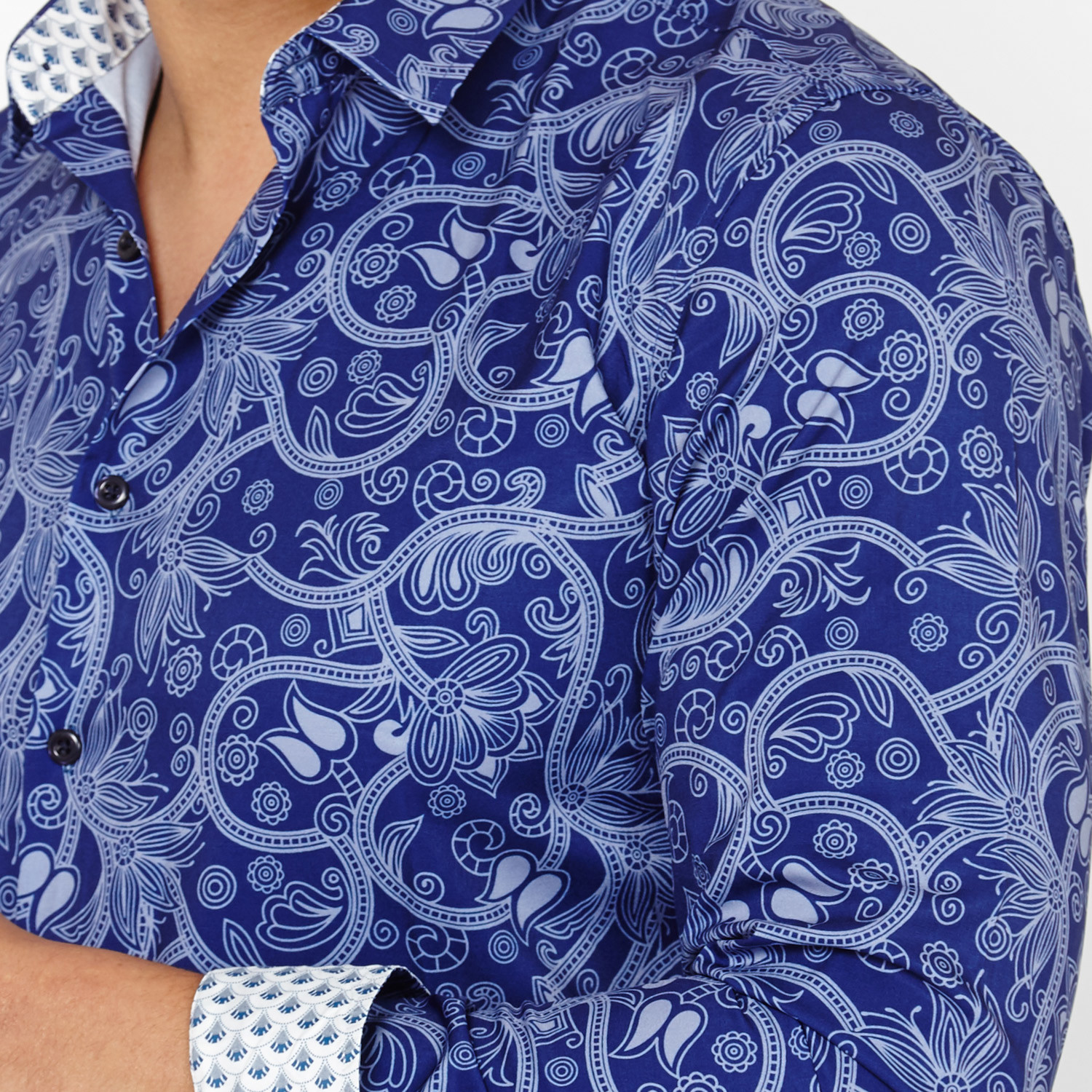 St. Lynn // Bold Button-Up // Blue Paisley (2XL)