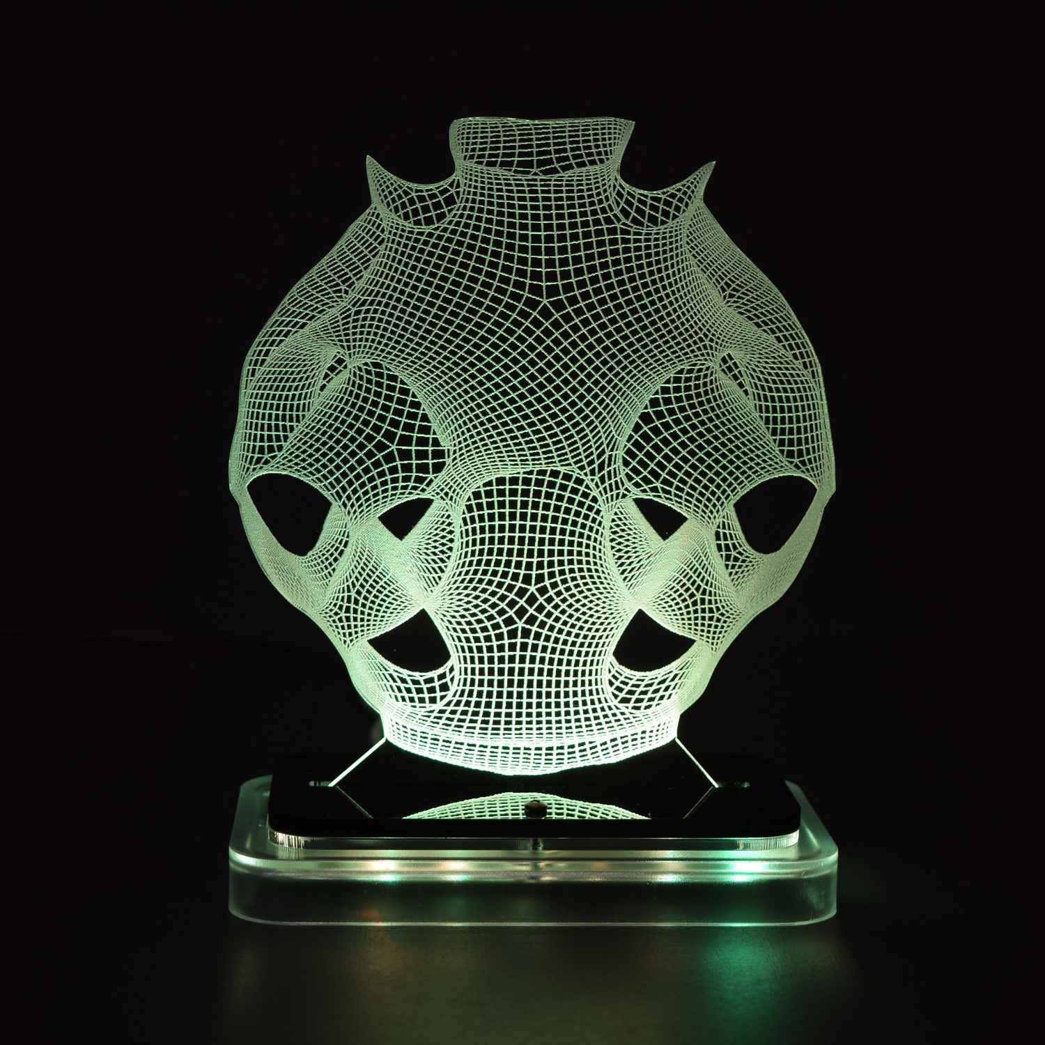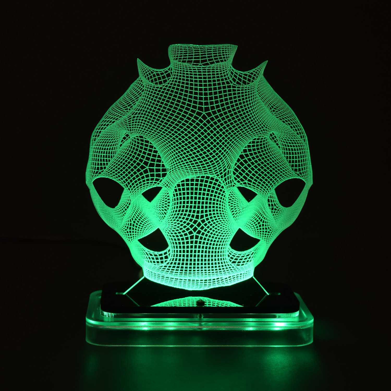 An original design by Blue Pine Studio, Alien resides somewhere between work of art and functional lighting fixture. Made from black and clear acrylic, custom-engraved and machined with Blue Pine’s own laser machines, it offers new and improved craftsmanship and consideration of form, fit, and function. It will add the perfect cutting-edge flair to your desk or office.
