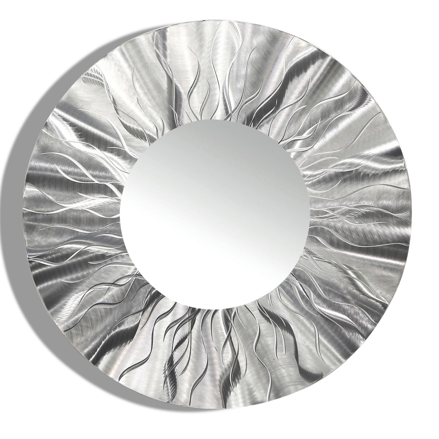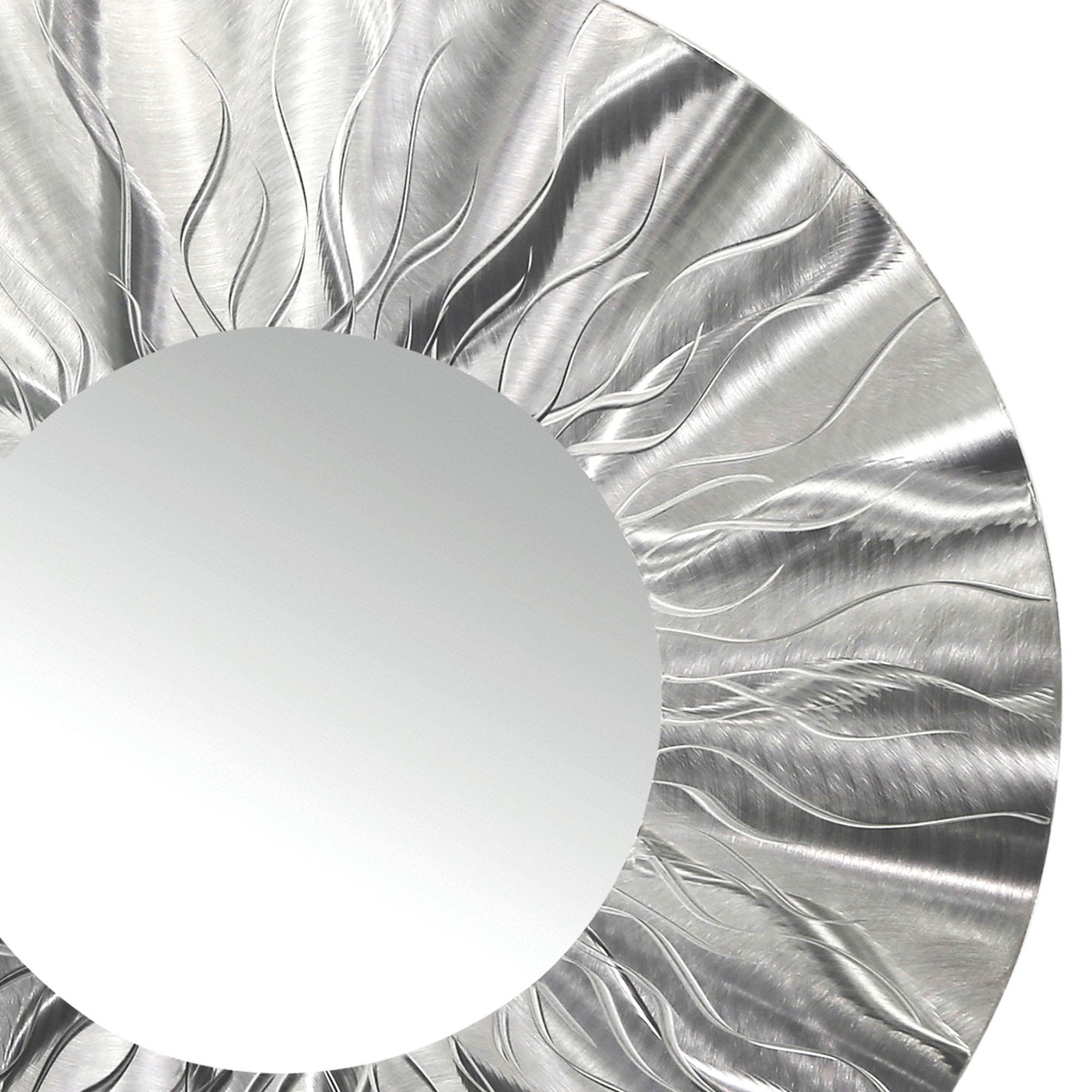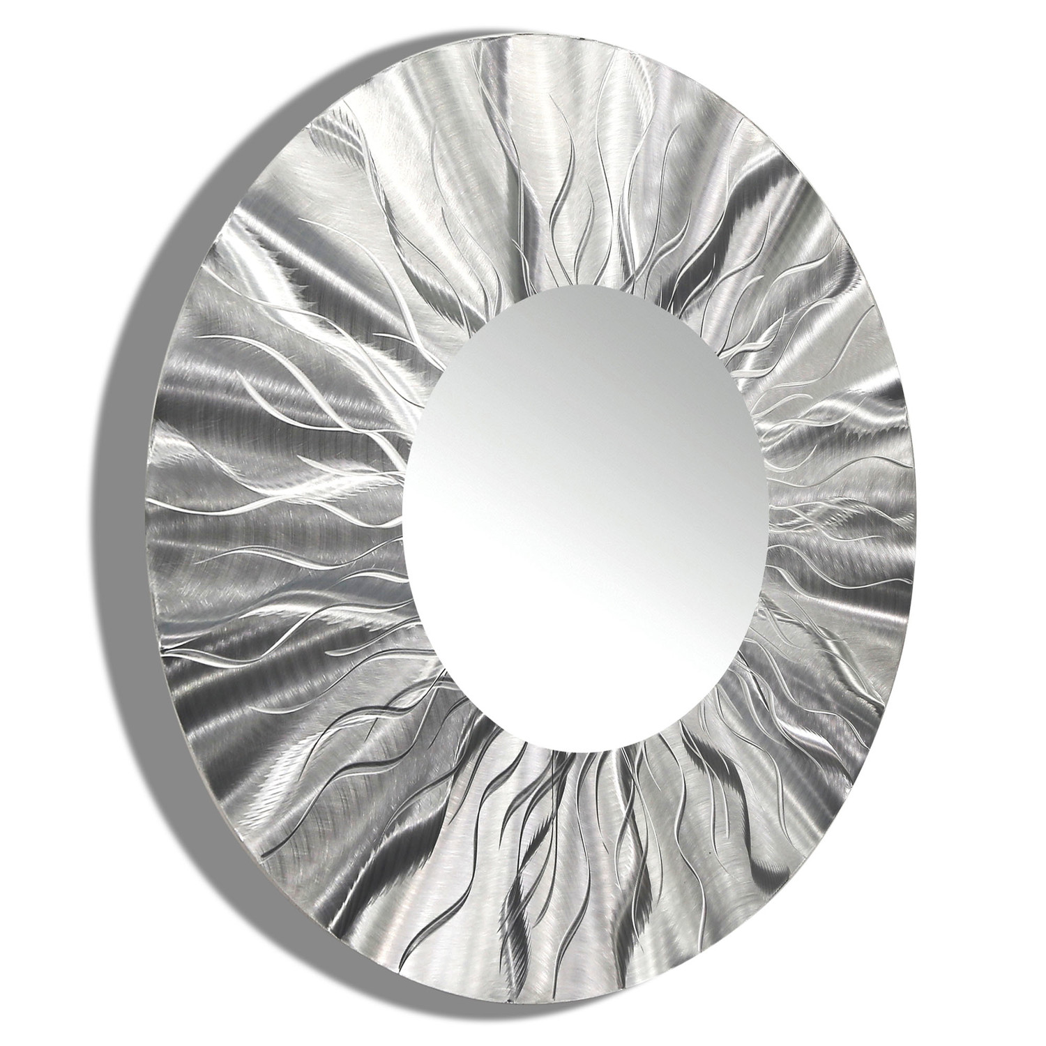 Intense etchings undulate across the Mirror 105. Infuse excitement and energy into your décor with this power piece that's been ground by hand to be dynamic, reflective, and totally unique. Made from aircraft grade aluminum, it's an original piece that's bursting with fresh energy.