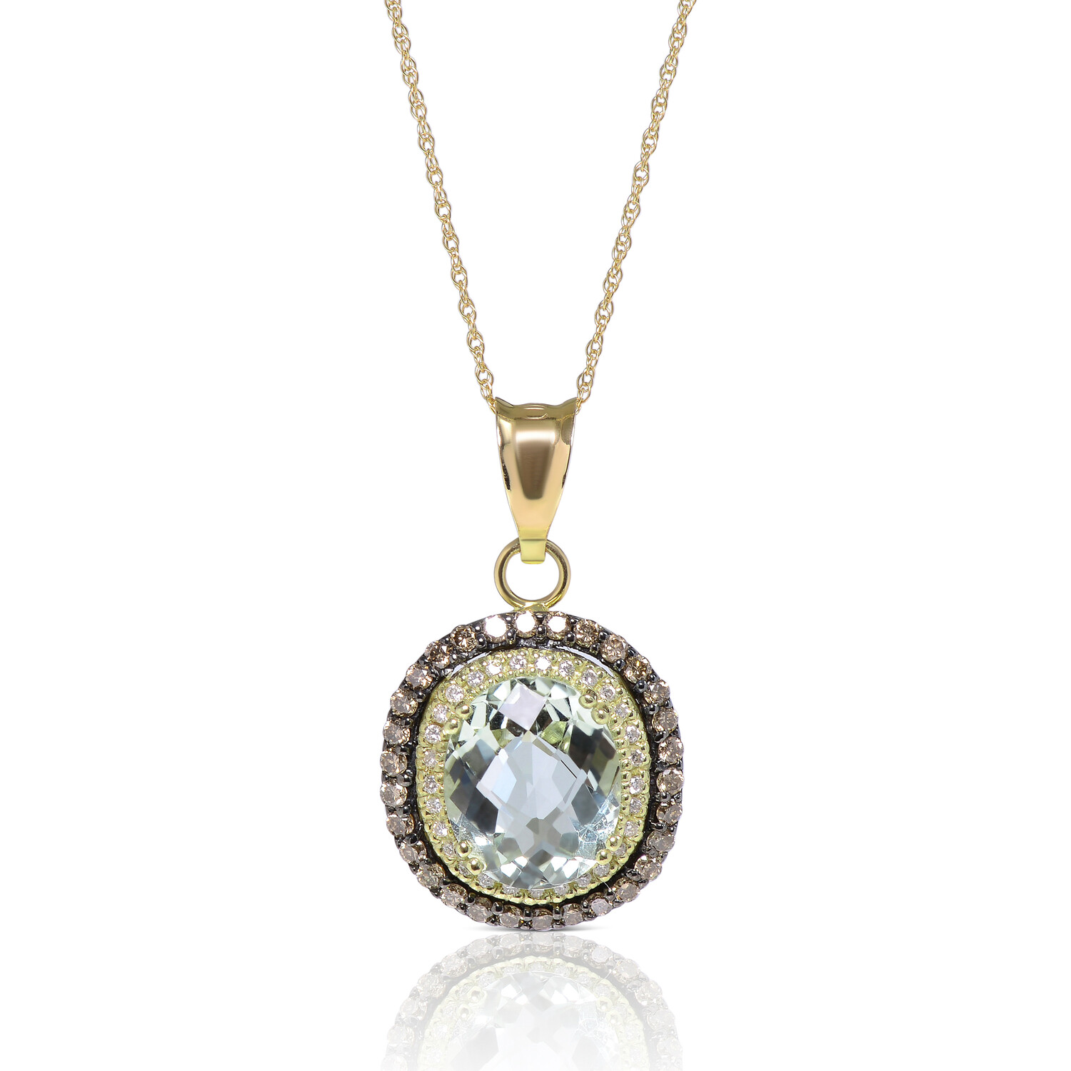 14K Green Gold Diamond + Green Quartz Pendant Necklace // 18" // Store Display