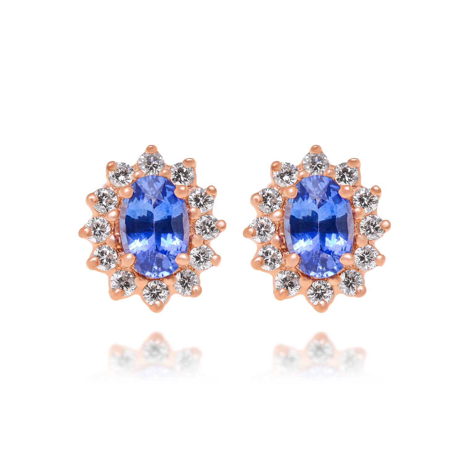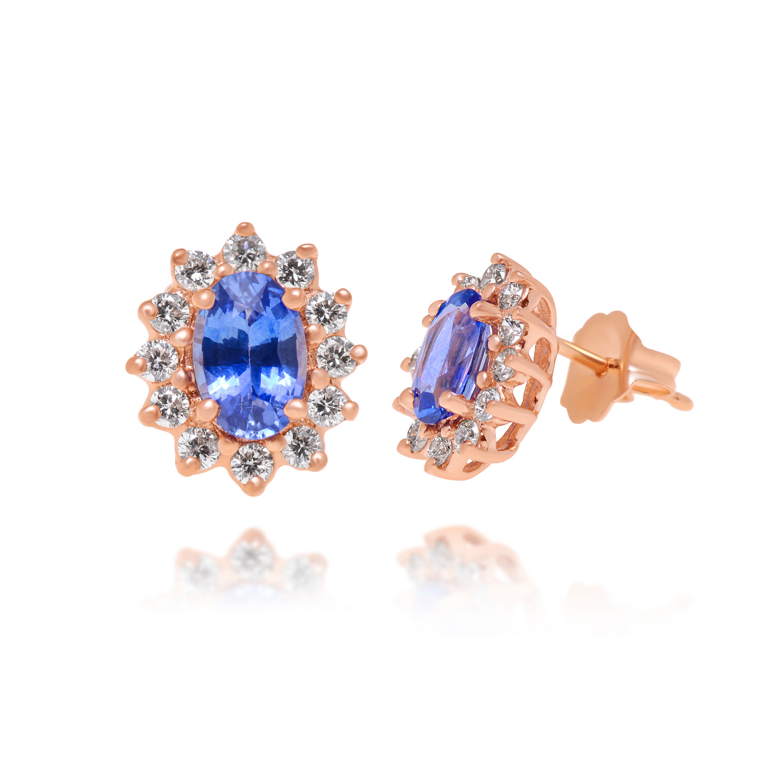 14K Strawberry Gold Diamond + Ceylon Sapphire Stud Earrings // Store Display