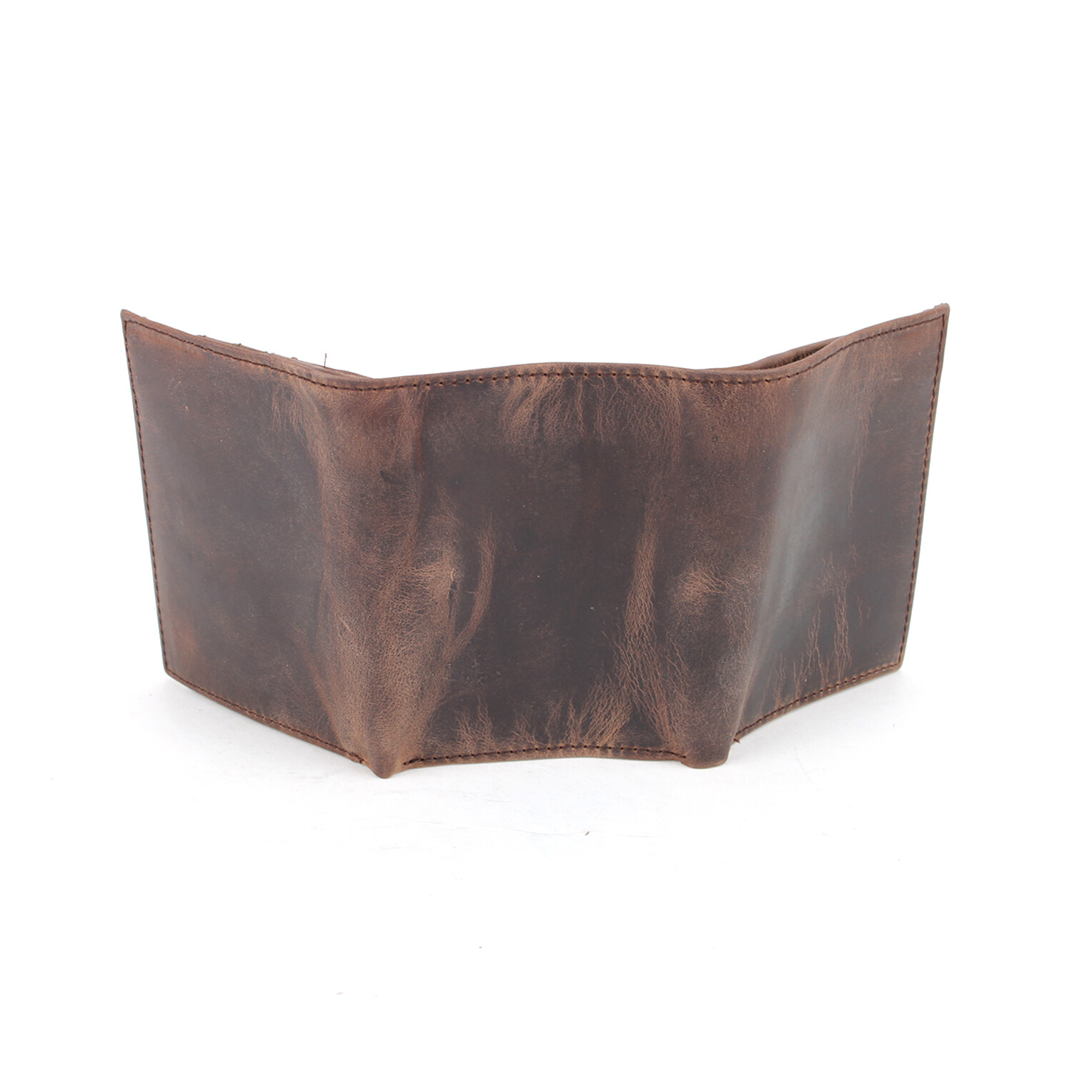 Hunter Leather Tri-Fold Wallet with Center Flap I.D. Window // Brown
