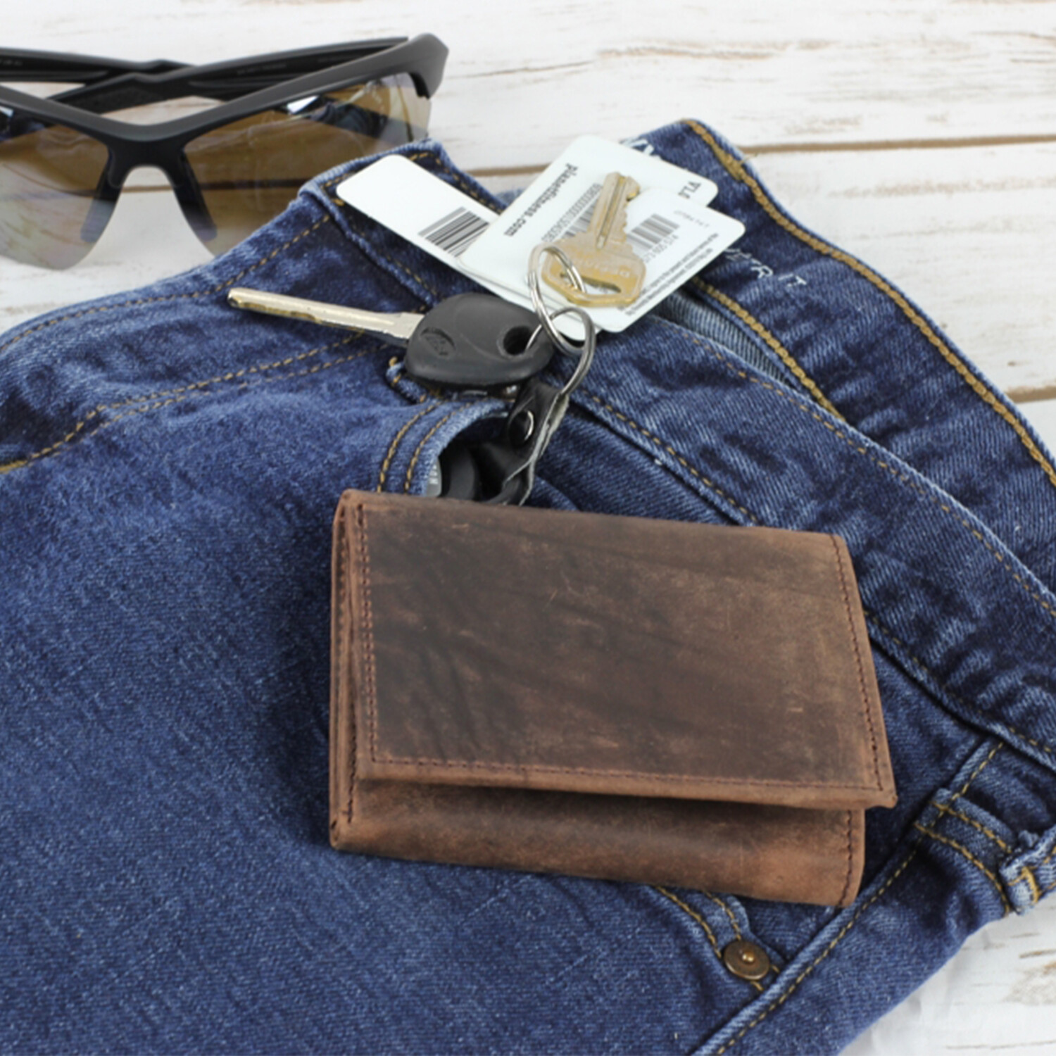 Hunter Leather Tri-Fold Wallet with Center I.D. Window // Brown