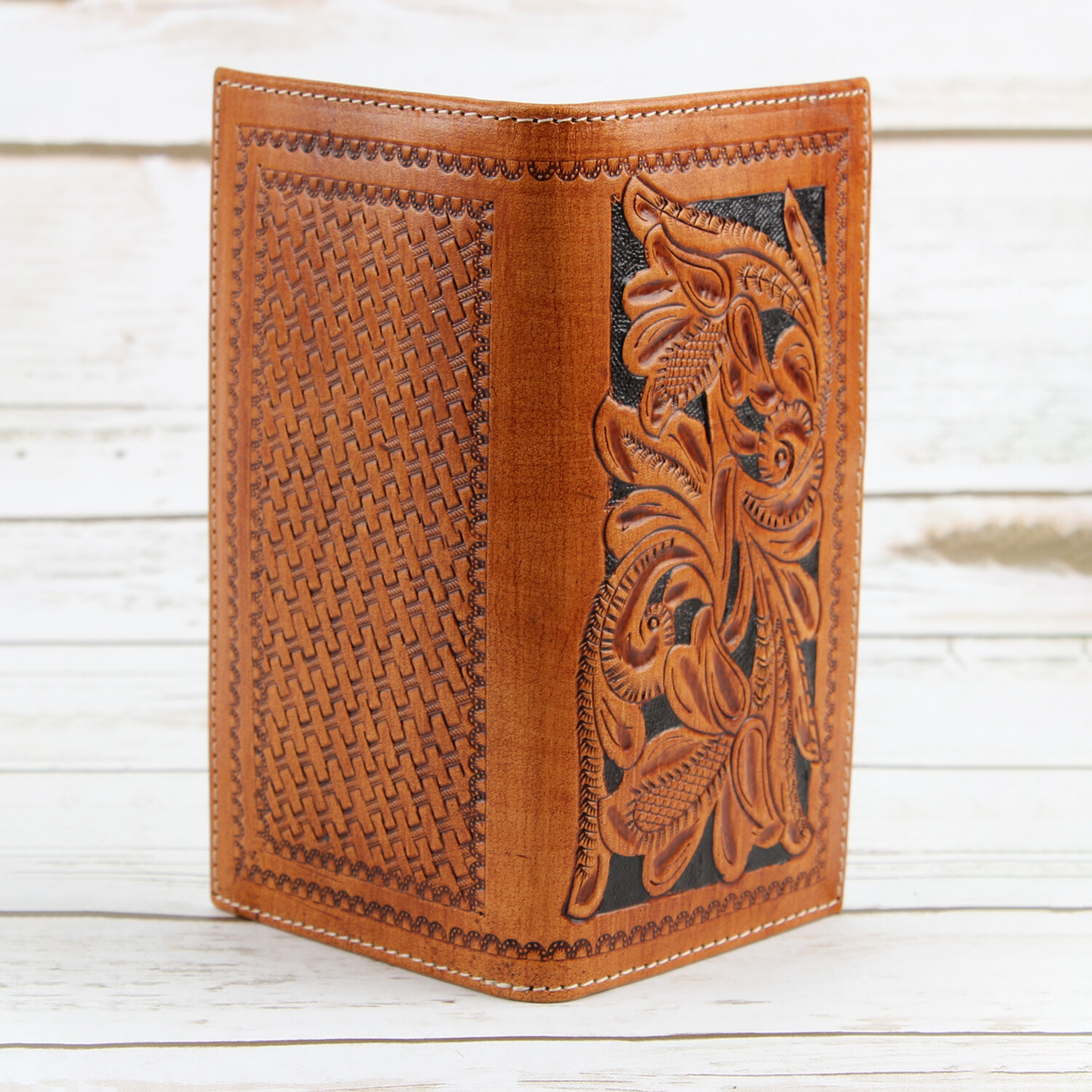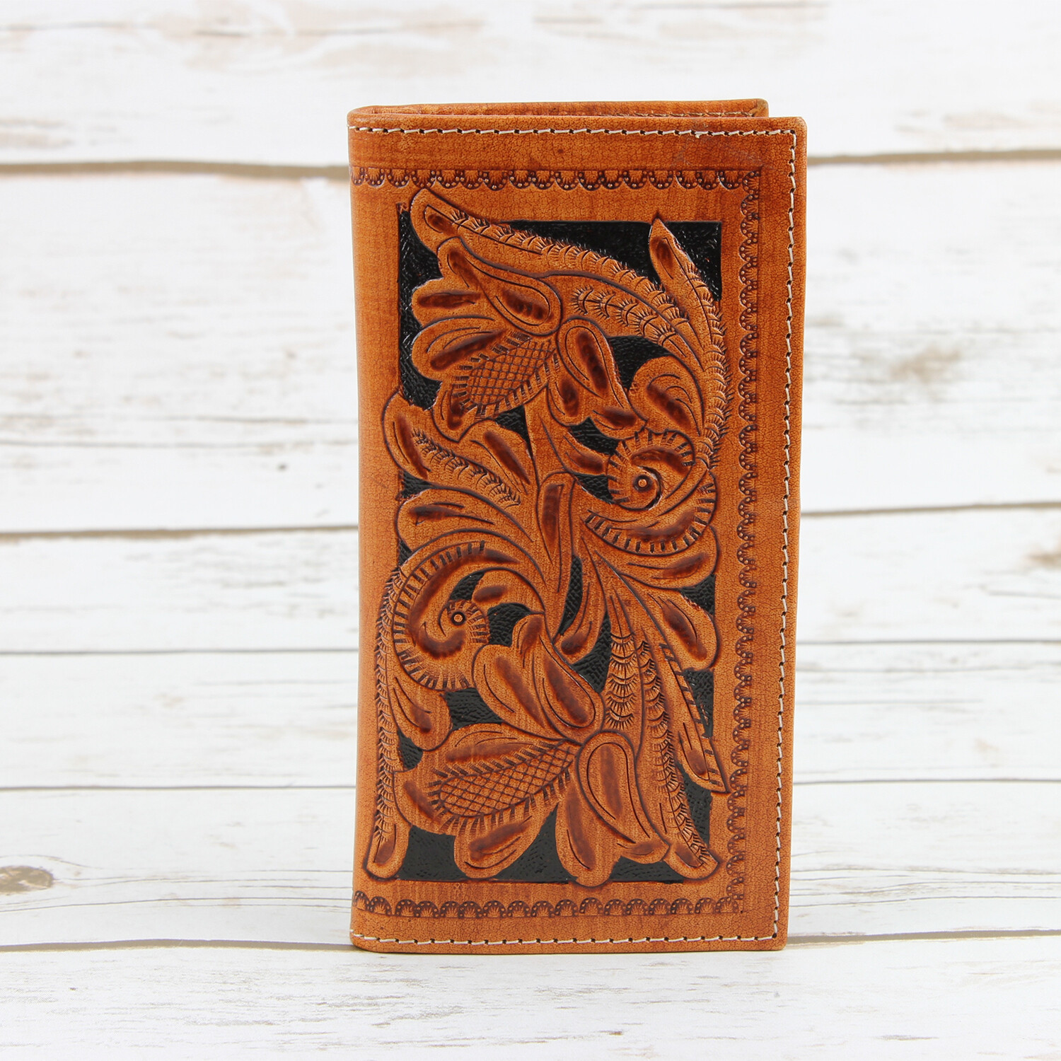 Tooled Leather Men's Long Wallet // Tan