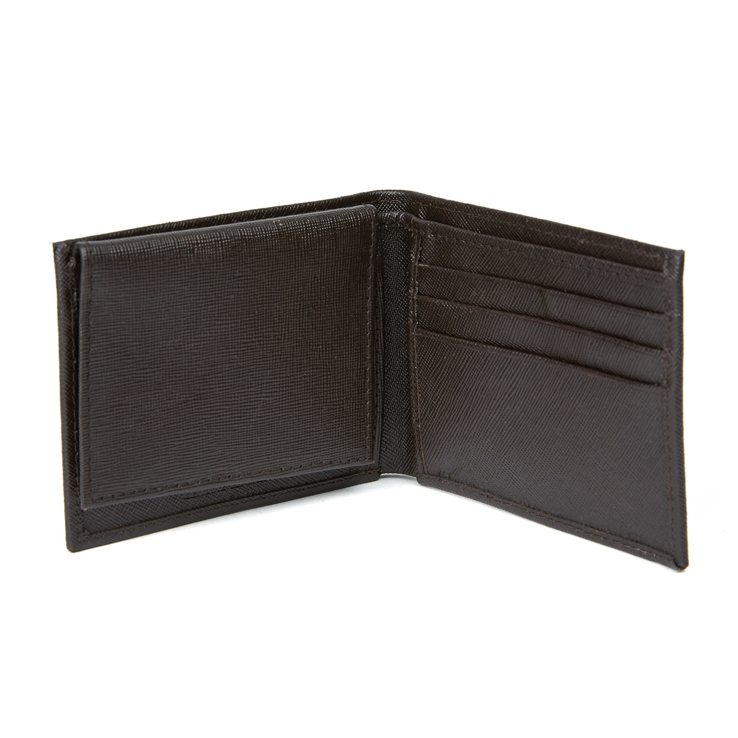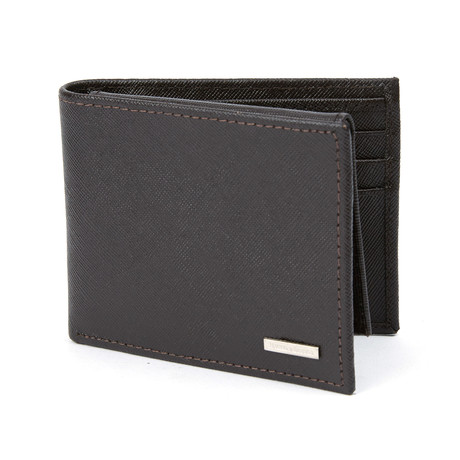 The Haines & Bonner Leather Passcase is a classic bi-fold wallet with subtle, elegant detailing. Made from saffiano leather, this piece features an ID insert, a metal logo plate, and tonal top-stitching.