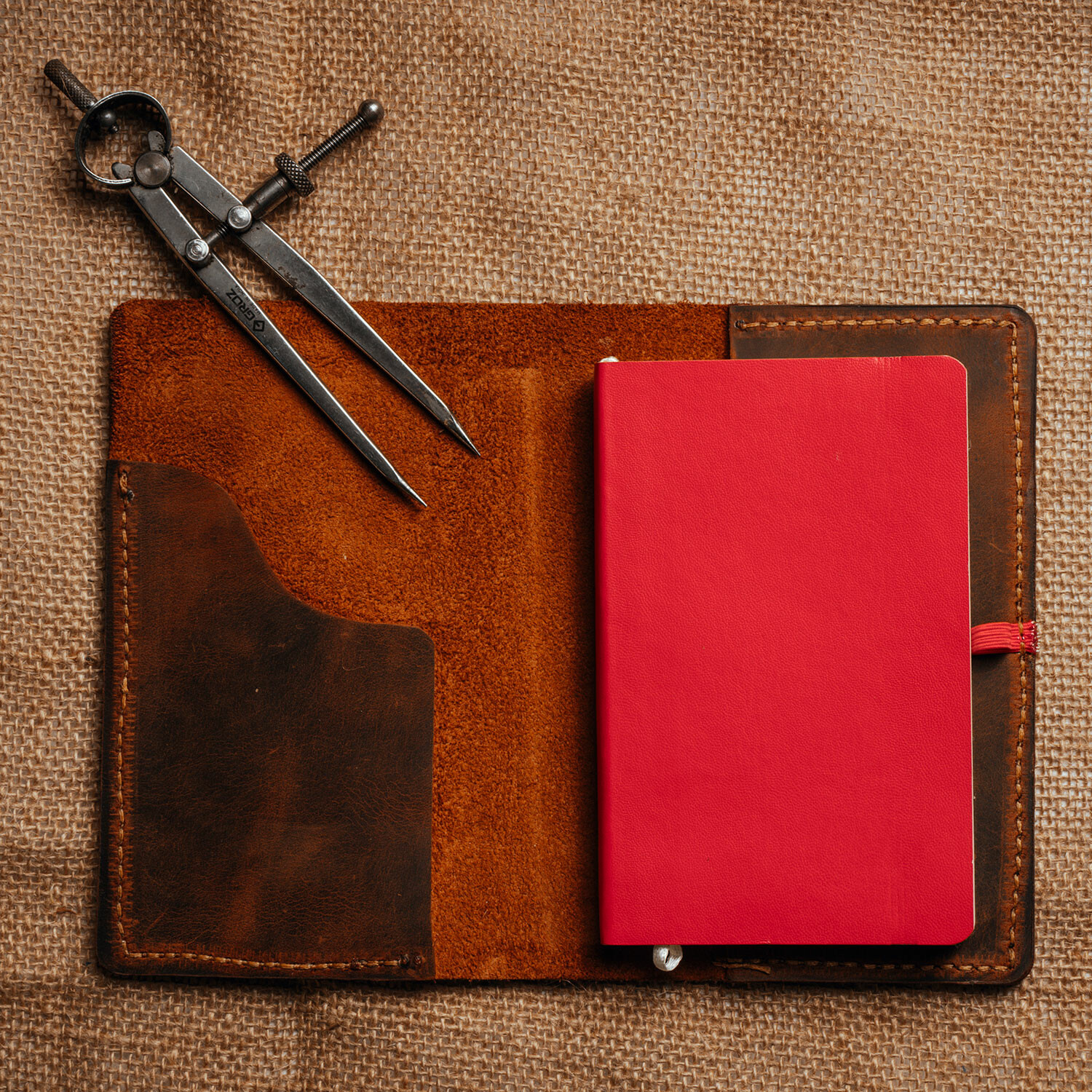 A5 Genuine Calf Leather Refillable + Unlined Notebook // Dark Brown