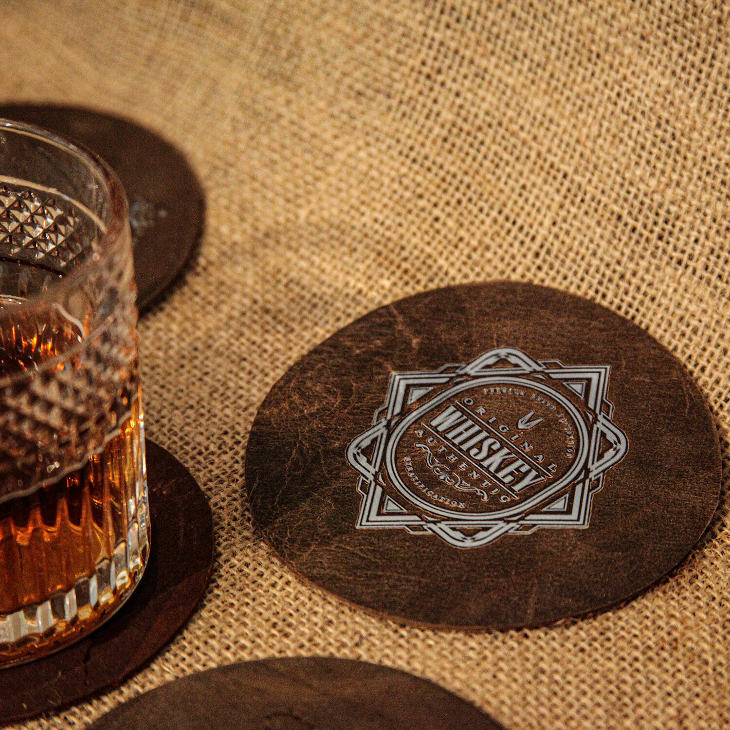 Genuine Calf Leather Whiskey Coaster // Brown