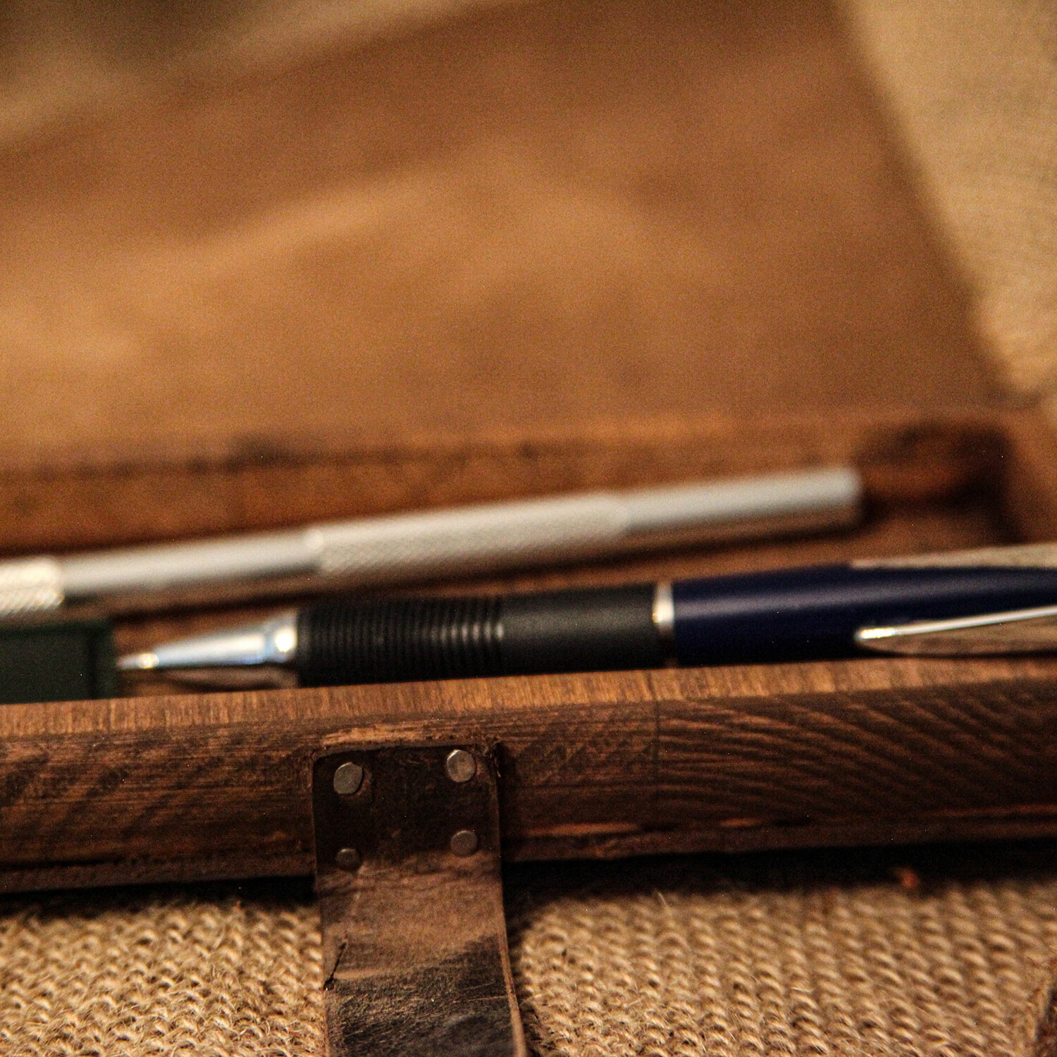 Genuine Calf Leather + Wood Pencil Box // Dark Brown