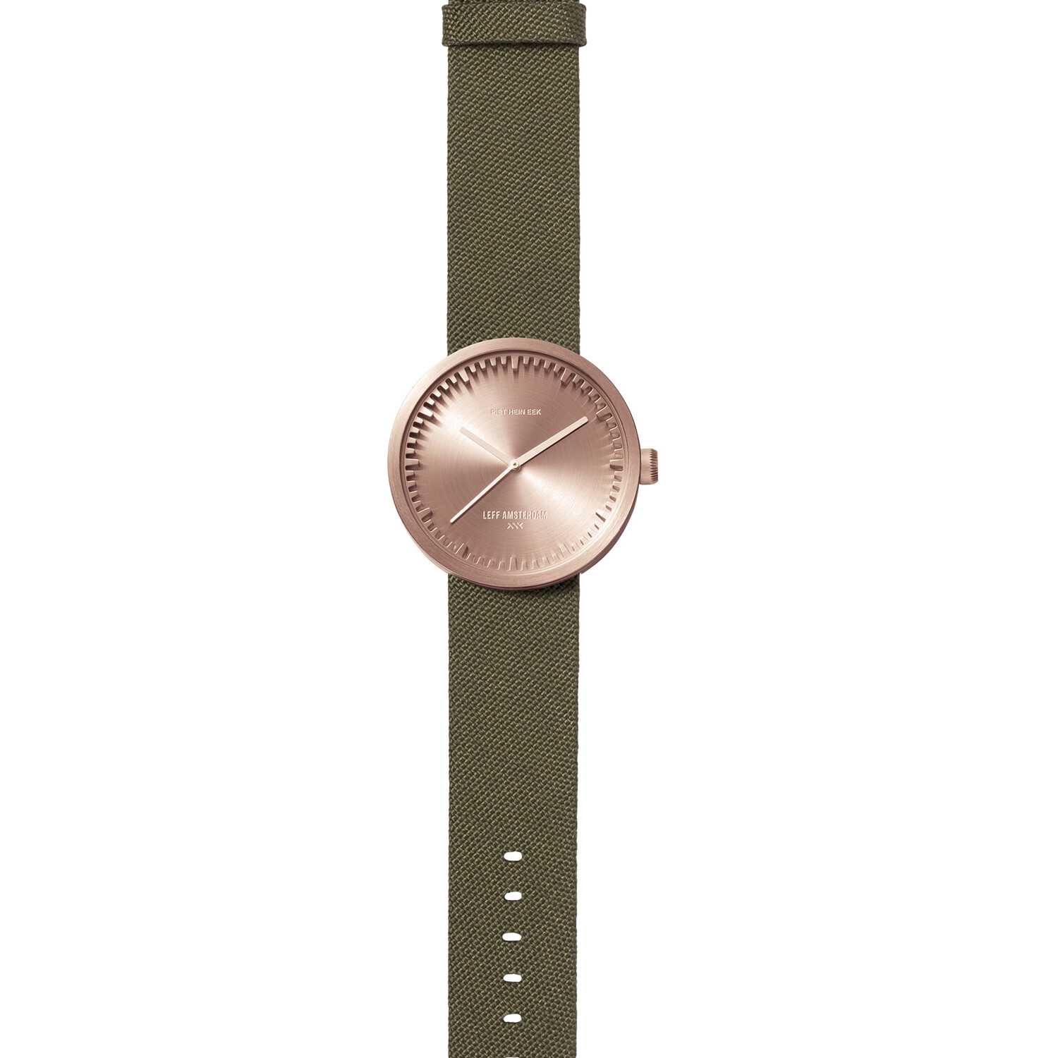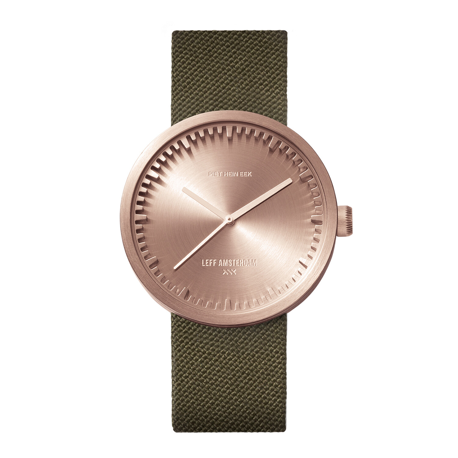 For the design of the Tube Watch, LEFF teamed up with Dutch Designer Piet Hein Eek. Piet’s unparalleled vision on design and LEFF Amsterdam’s raw, industrial, and sophisticated approach came together in an amazing collection of refined yet tough watches. The design of the Tube Watch has an iconic ring that functions as the face.