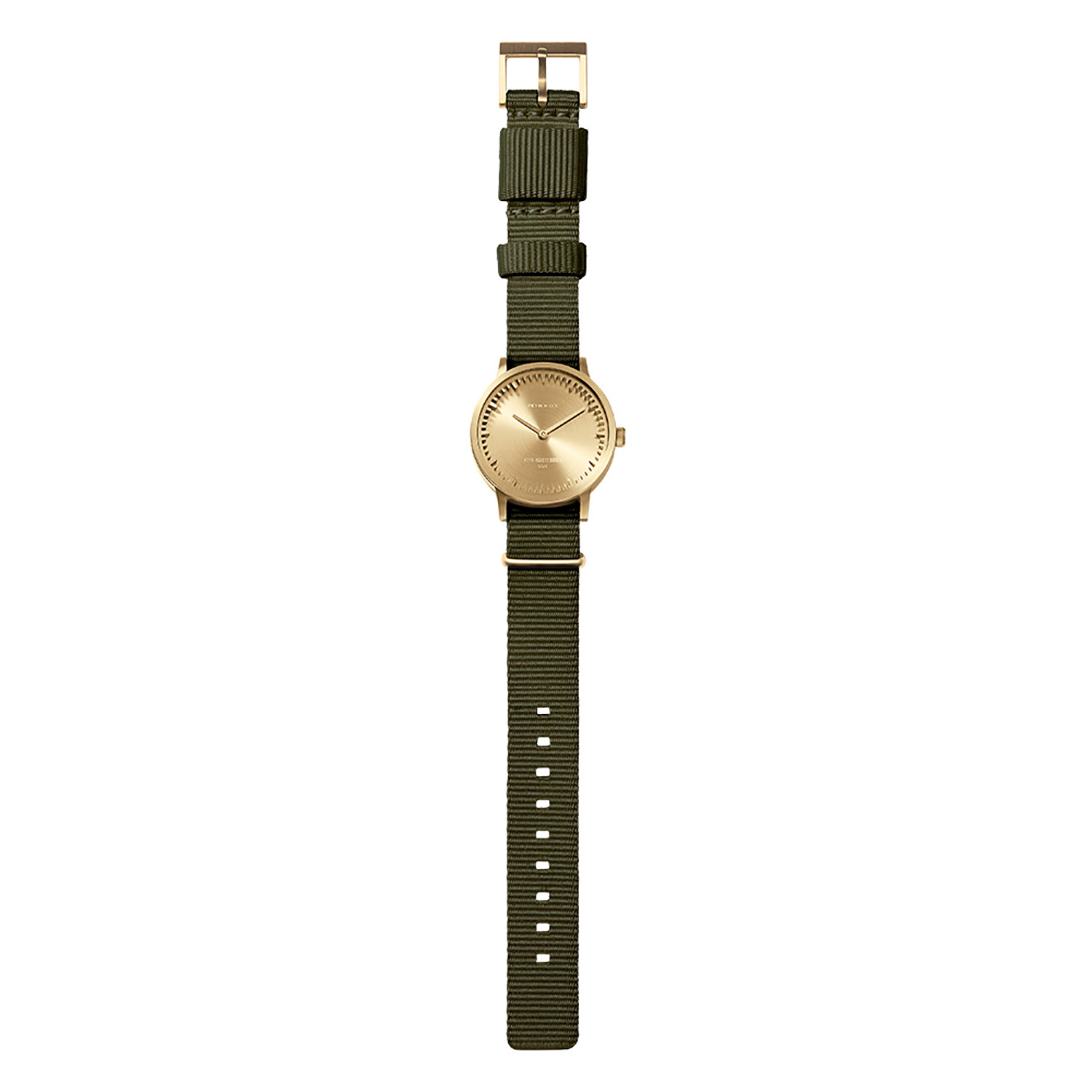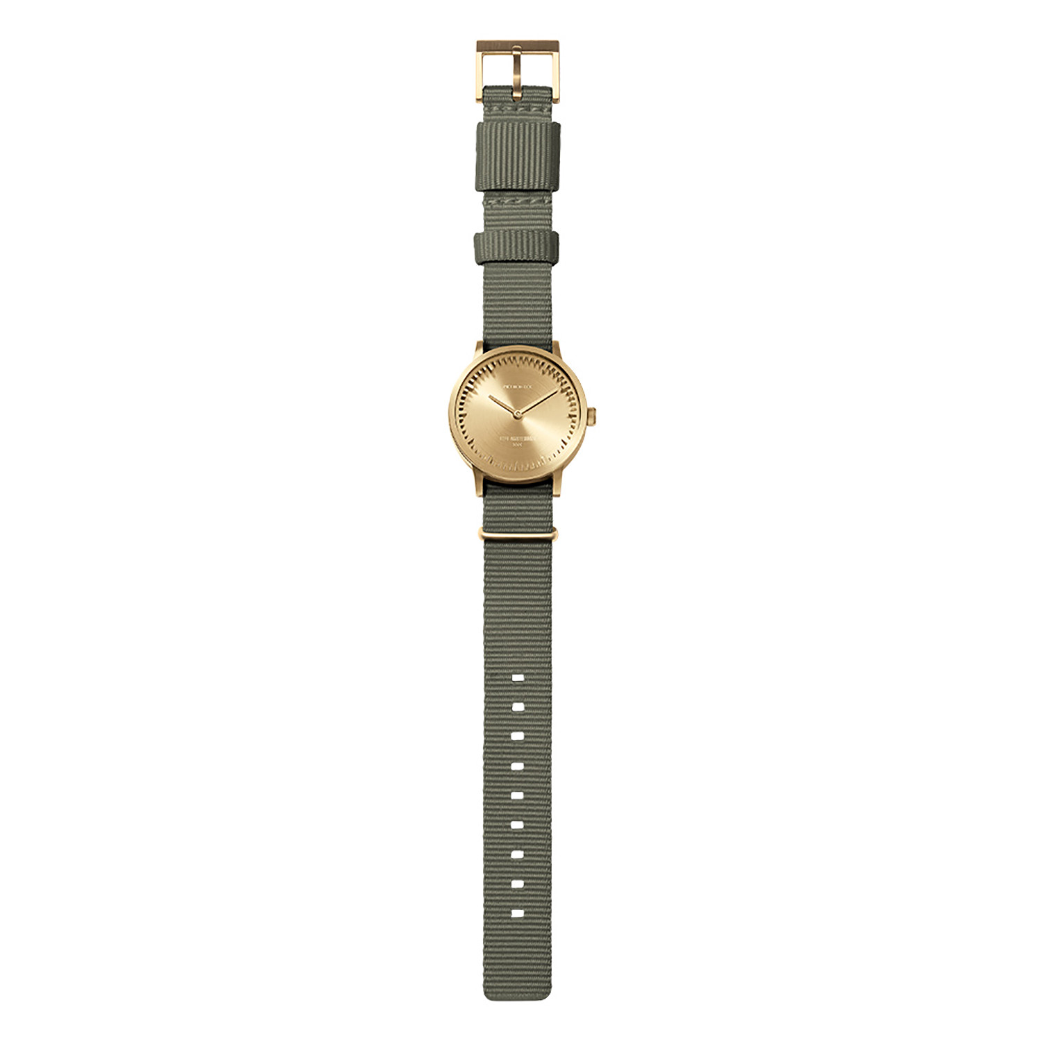 Tube Watch T32 // Brass // Gray Nato (Black Leather)