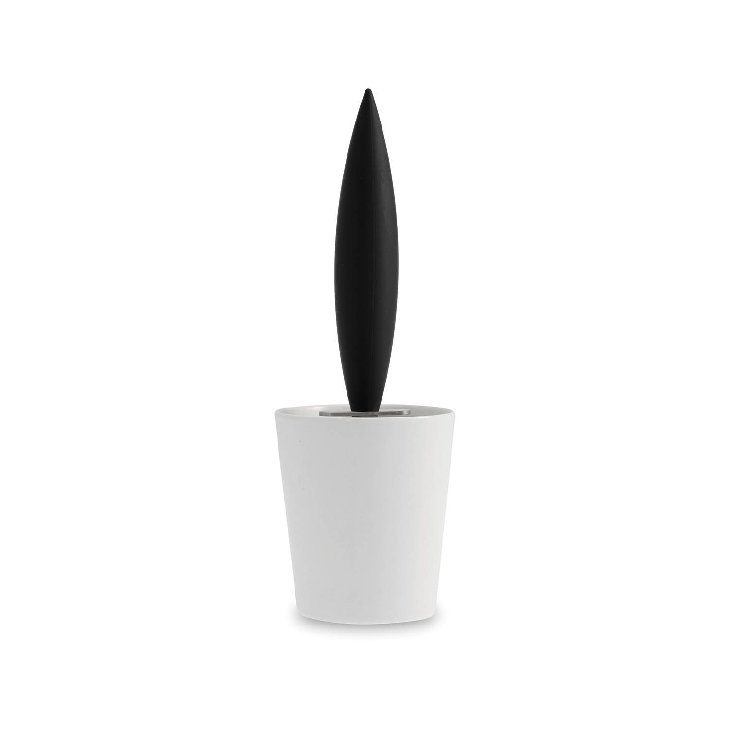 The Rotae Pizza Cutter is designed to look like a super minimalist and abstract flower in a pot. The silicone handled cutter fits right inside the base, so you can store it beautifully anywhere, without taking up drawer space, or keeping boring, unwieldy knives lying around.