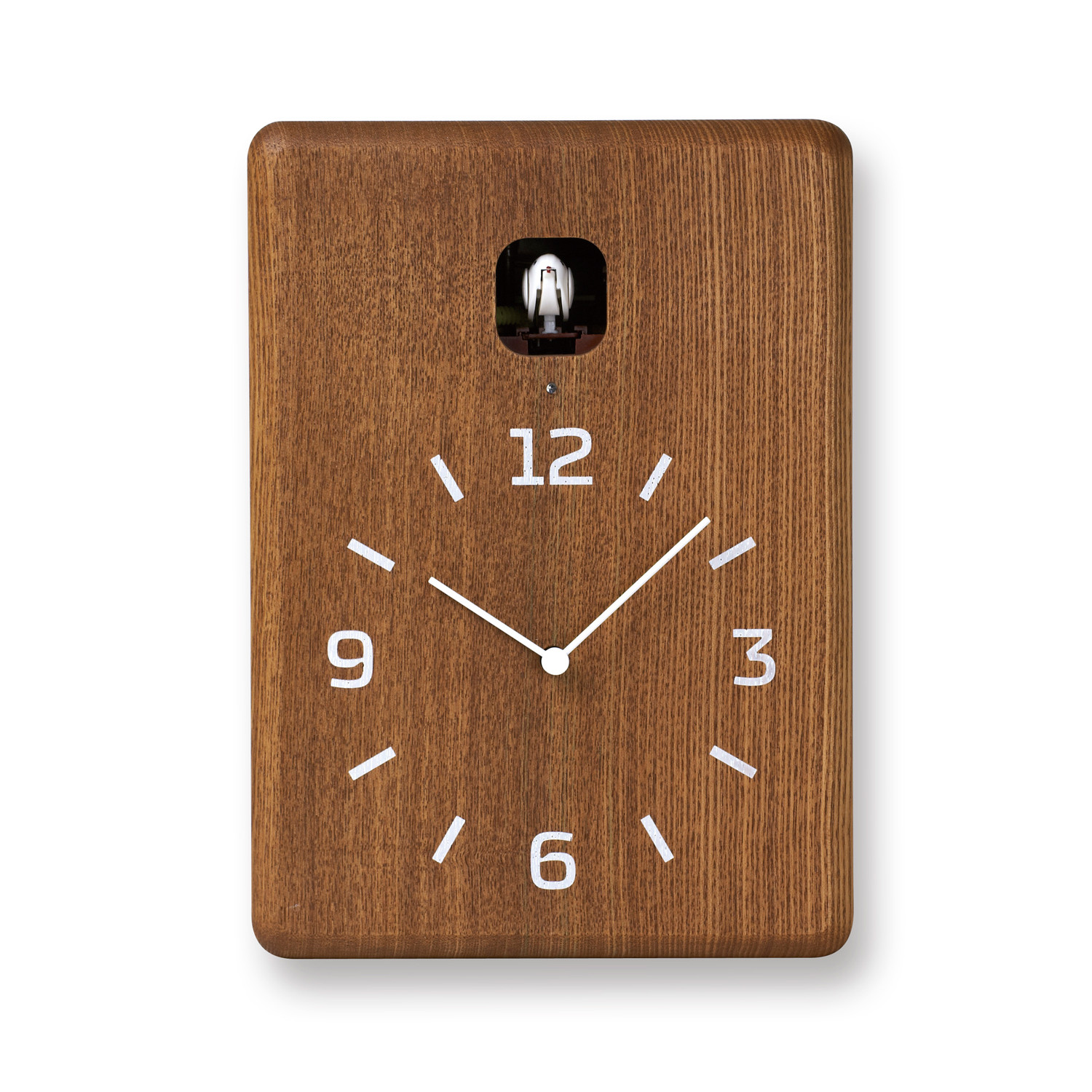 The CuCu is made entirely of wood for a solid weight and feel on your wall. It has a built-in intelligent light sensor that turns off the clock's movement after 6 pm so you won't be disturbed and there's 2-step volume control for adjusting the chirping on the hour.