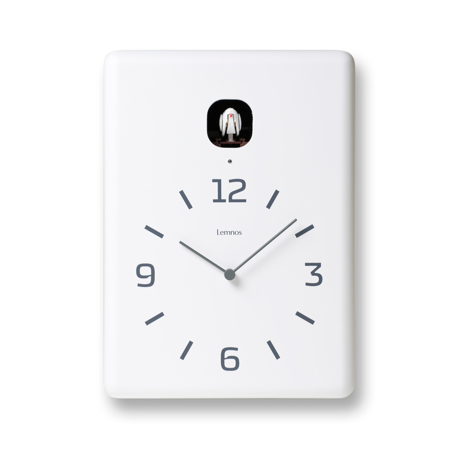 The CuCu is made entirely of wood for a solid weight and feel on your wall. It has a built-in intelligent light sensor that turns off the clock's movement after 6 pm so you won't be disturbed and there's 2-step volume control for adjusting the chirping on the hour.
