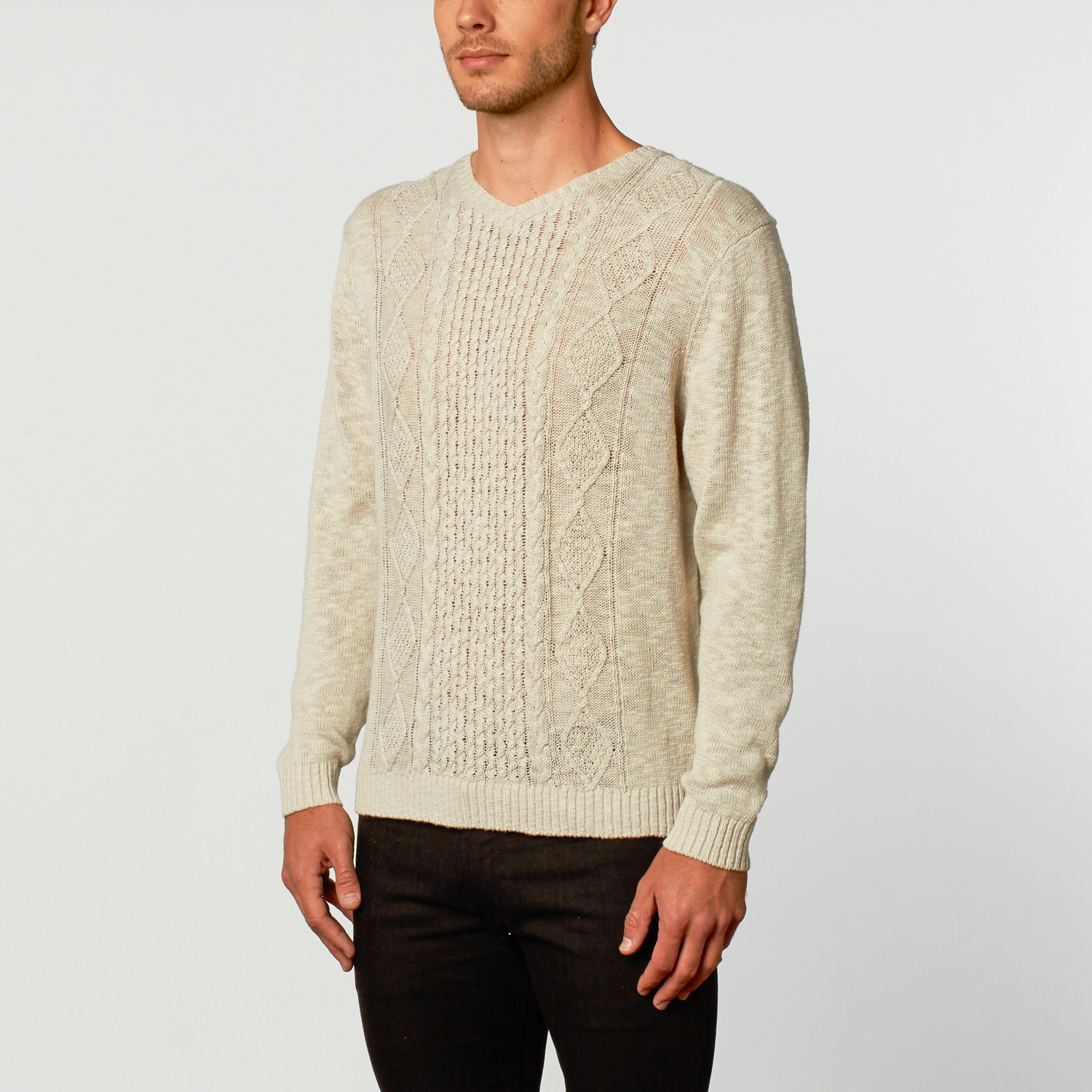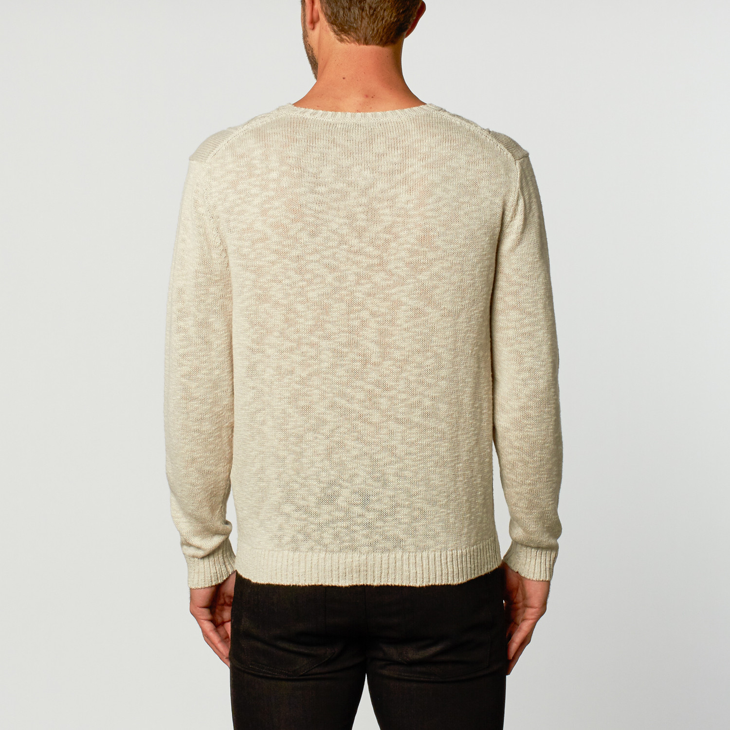 Incredibly soft and simple, this textured v-neck sweater pulls on easily, for a tousled, rugged look that's meant for evening strolls, or windy afternoons at the beach.