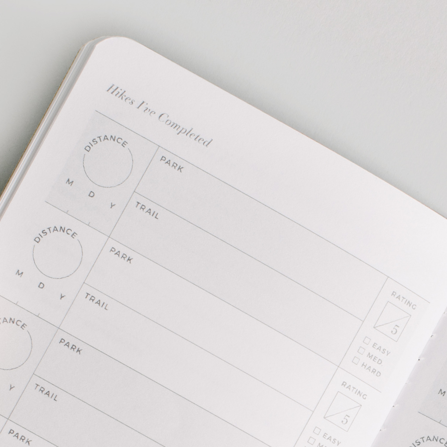 The National Park and Hike Passports each contain 20 entry logs to record meaningful details of each National Park visited and hike you venture out on. Each entry page is accompanied by a blank page for sketches, memories, or affixing mementos like stamps or photos. The back pages of the National Park and Hike Passport include bucket lists, hike logs, and checklists.