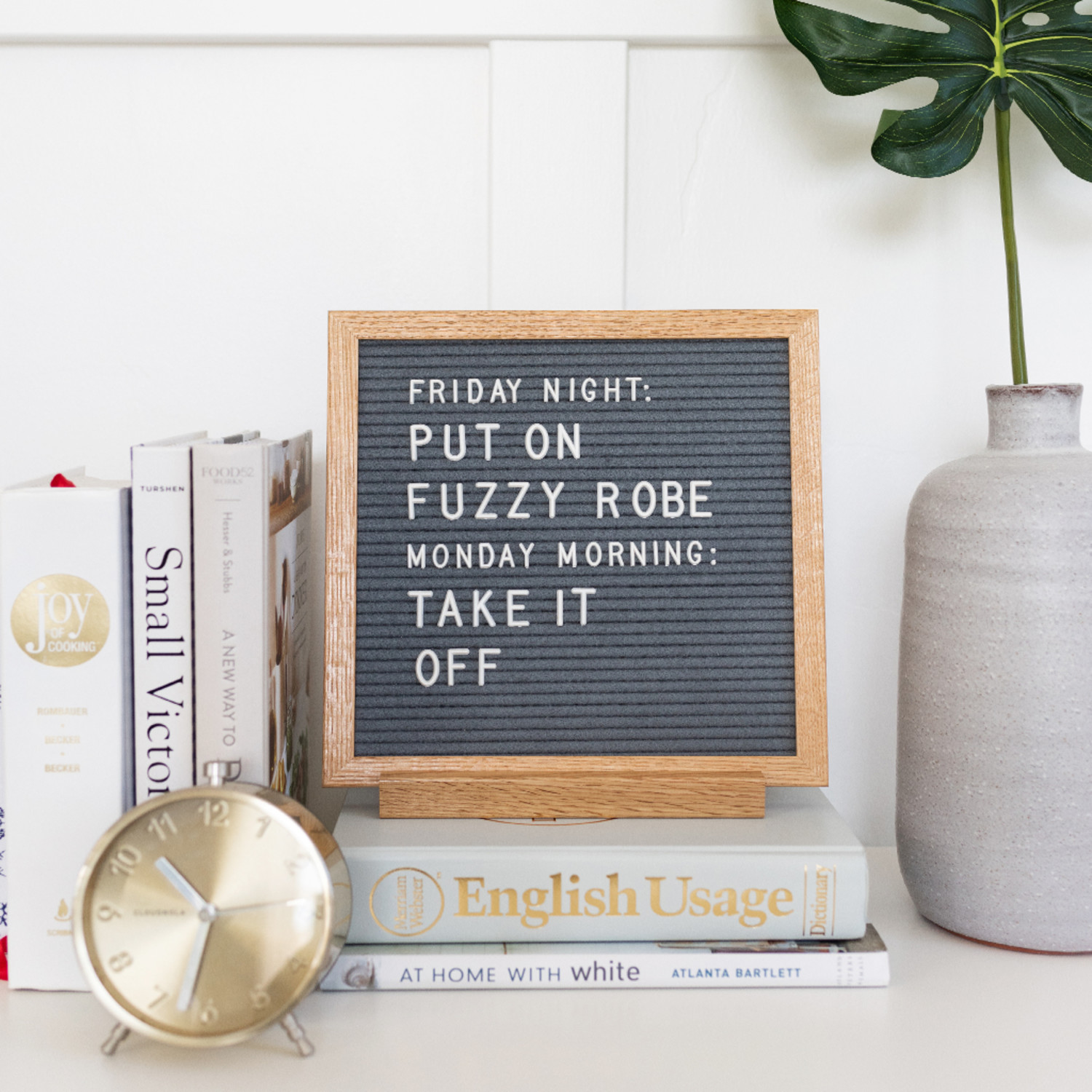 The Poet is handcrafted for versatility. Ideal for succinct messages, this square board can be hung on the wall, leaned on a side table, or easily transported and used as a photography prop. This 10" x 10" oak-framed letter board is the perfect accent piece for any home or office.
