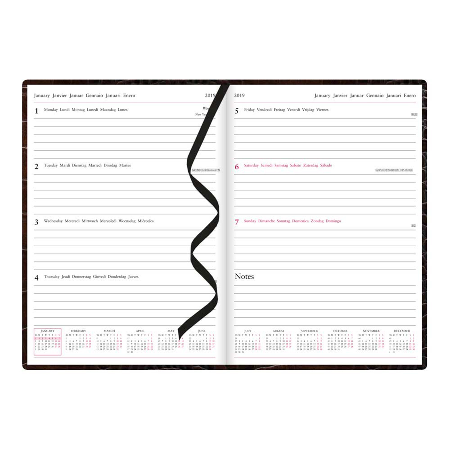 Exquisitely crafted with a supple leather-look cover in a rich, crocodile embossed print, Letts of London's Croc Diary 2019 is an elegant and useful addition to any desk or briefcase. This week-to-view notebook features everything you need to stay organized and motivated, including calendars, planners, space for personal notes, and quick reference information, so you’ll be ready to catch any idea that comes your way.