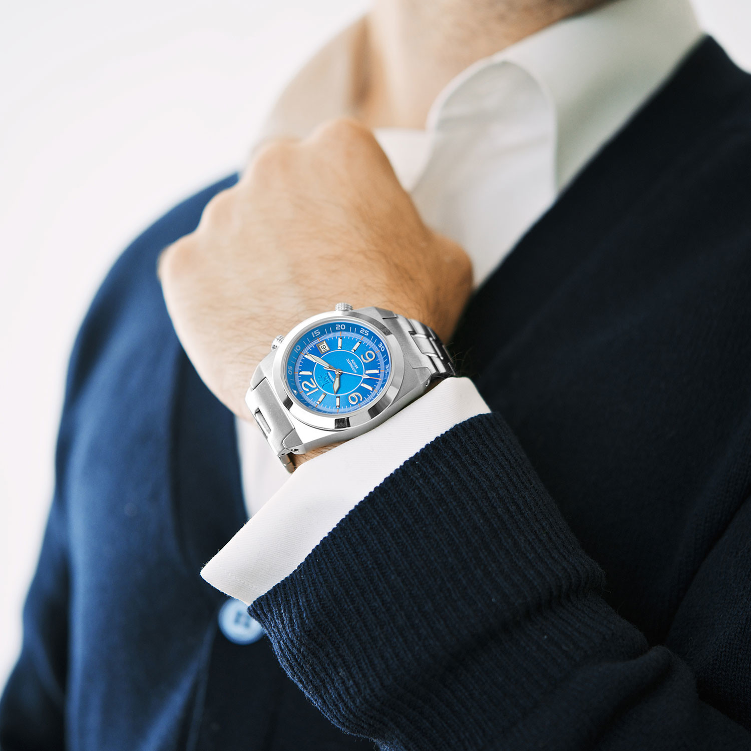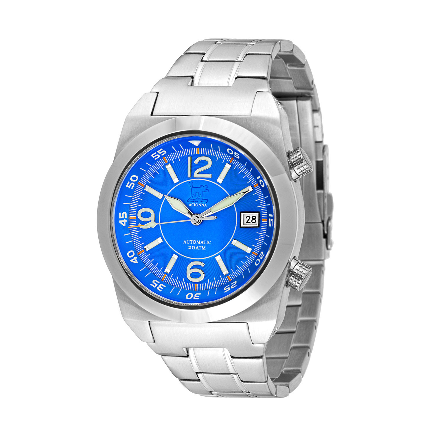 With a screw-down crown, 200 meter water resistance and innovative illumination system, the Acionna was engineered to be a rugged diving watch, yet it has a stylish design versatile enough to be worn every day.