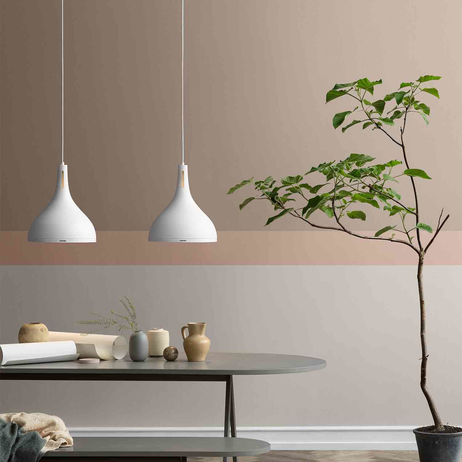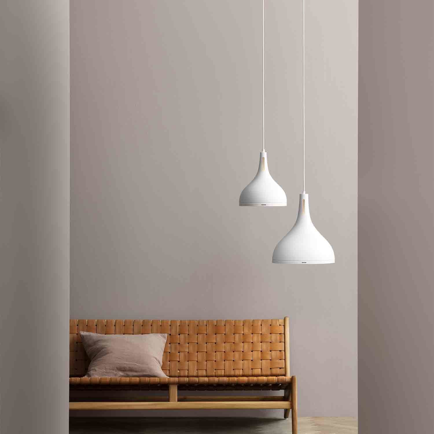 The Castor 35 boasts a sleek look in cool shades to illuminate your home. The elegant steel pendant is finished with a sanded, matte coat combined with a glossy accent rim for a look that is stylish and tasteful. It comes complete with a ceiling rosette and a 10ft fabric covered cable, colored to match.
