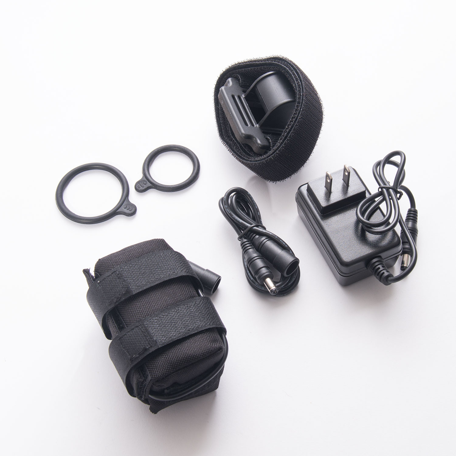 — Package Includes: Light Head, Battery Pack, Charger, Helmet Mount, Extension Cable, O-rings