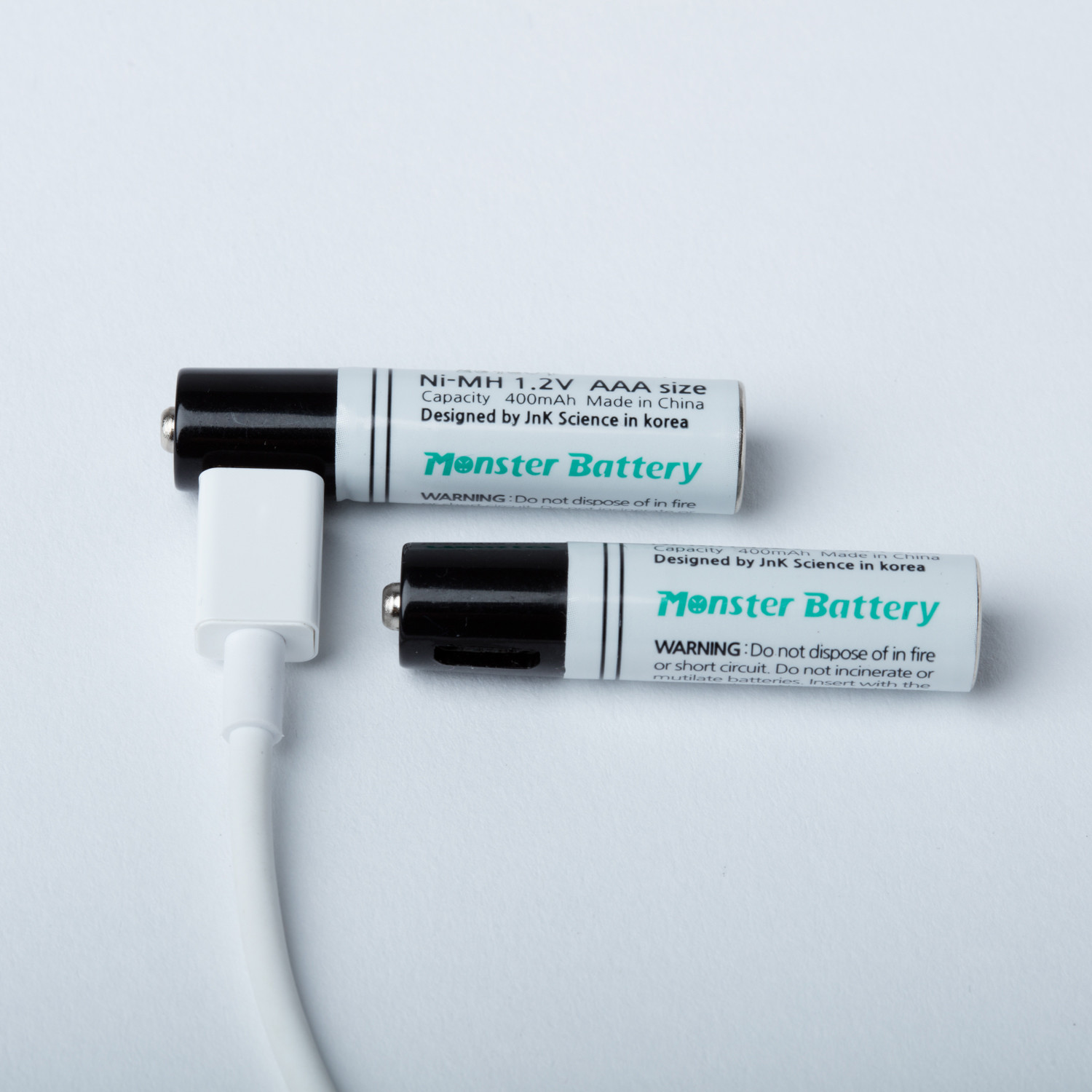 Monster Battery is a micro-USB battery, an environmentally-friendly battery that does not require a charger. A USB socket is built inside the USB cable, which allows you to recharge this environmentally-friendly battery by plugging it to a micro-USB port. Therefore, it does not require a charger! When it's in mid-charge, the light will glow red, and when fully-charged, the light will glow blue. It's never been easier to keep track of your charging, or even to change a battery.