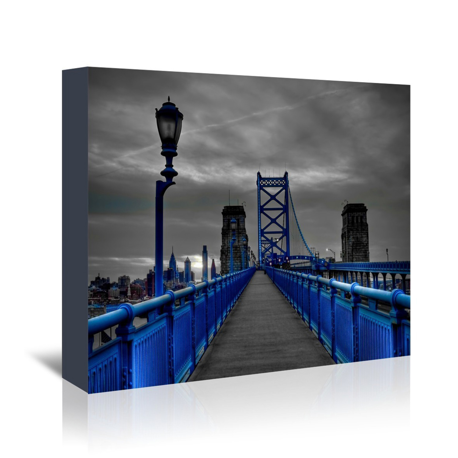 This gallery wrapped canvas print is part of an original collection from Lina Kremsdorf, fine art photographer whose love for icy winterscapes and city views dominates her body of work. With no need to frame this print that pops off your wall, it's easy to add an elegance to your wall with Blue Bridge.
