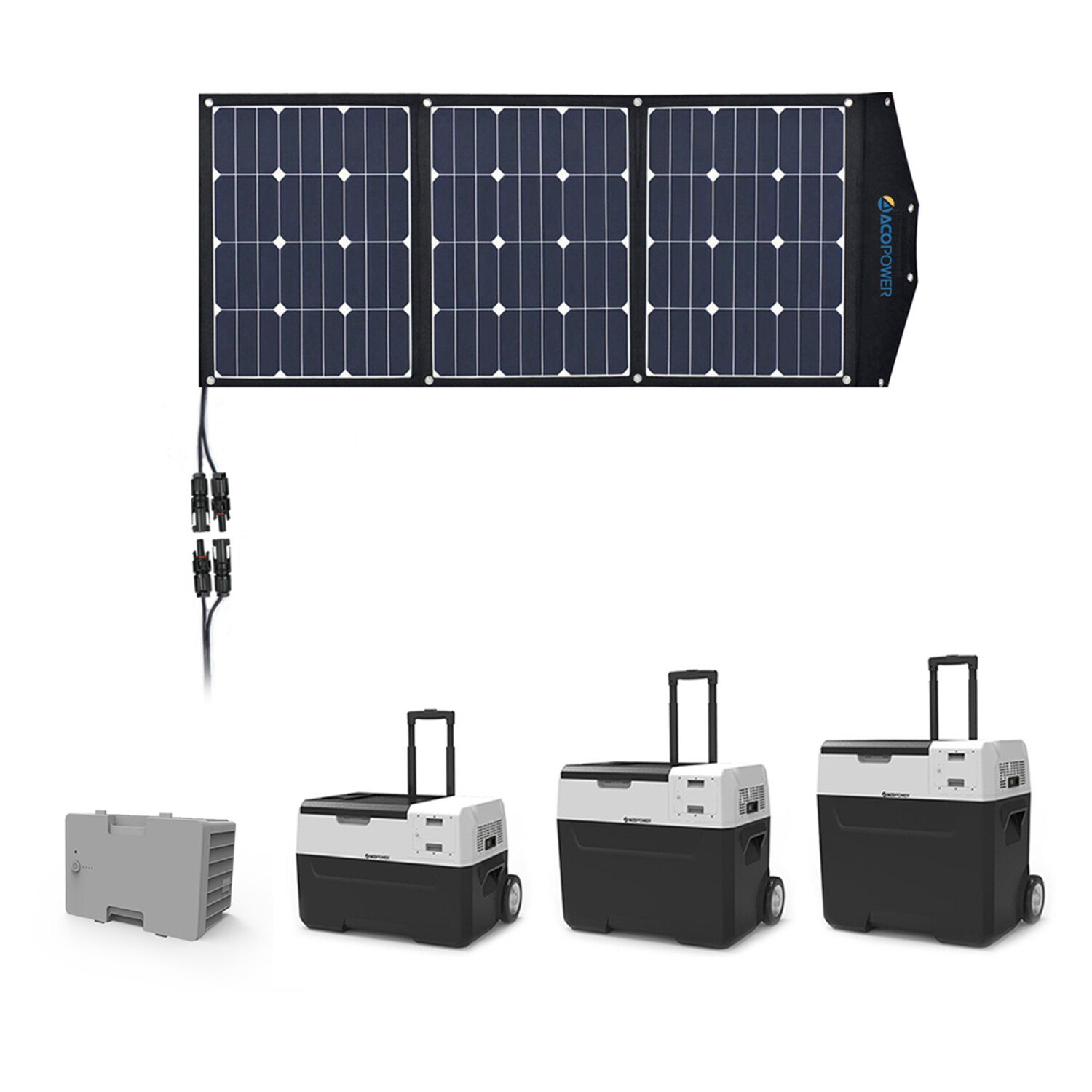 This set includes the ACOPOWER 90W foldable solar panels, which features three 30W panels that fold down into a highly portable suitcase so you can power your LiONCooler anywhere there is sun.