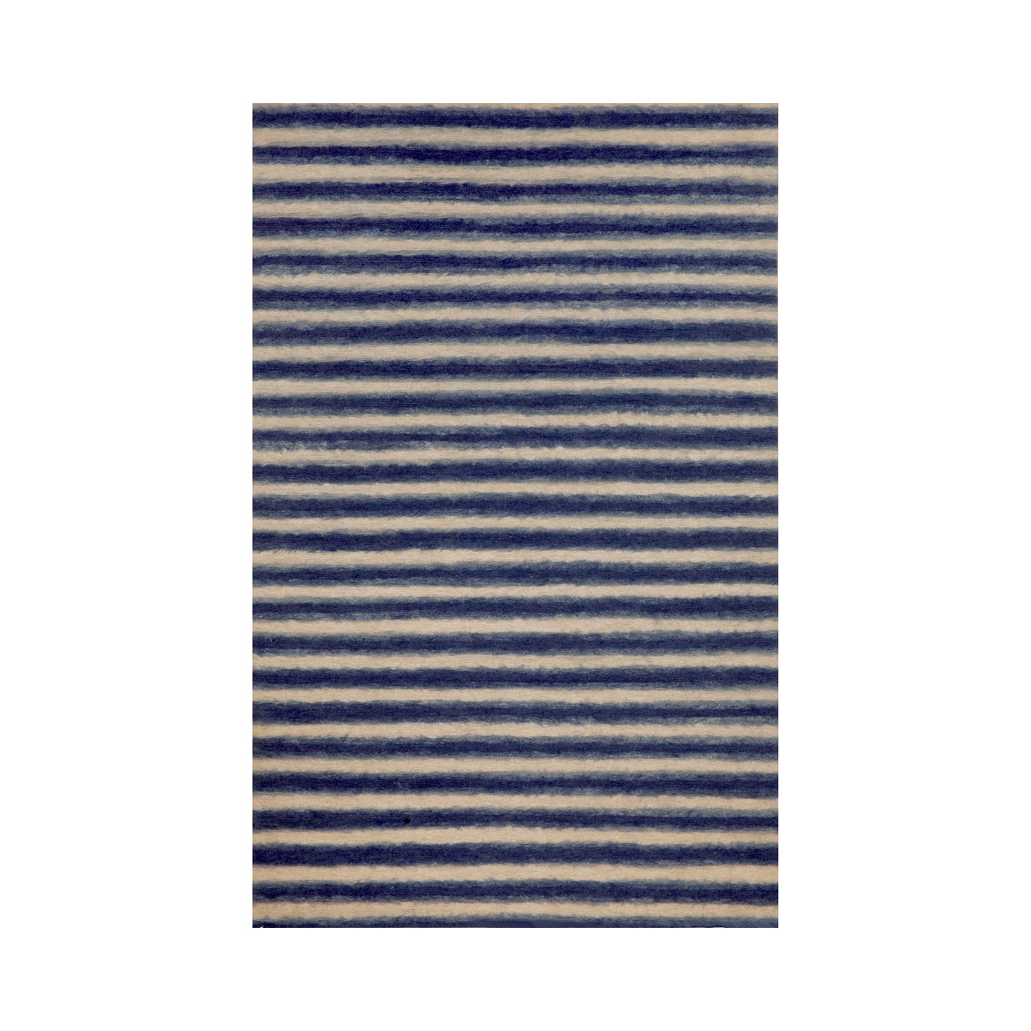 The Thick Stripe Rug in Denim and Taupe was made using internationally renowned designer Liora Manné's patented Lamontage design process to achieve a classic style with a contemporary twist.