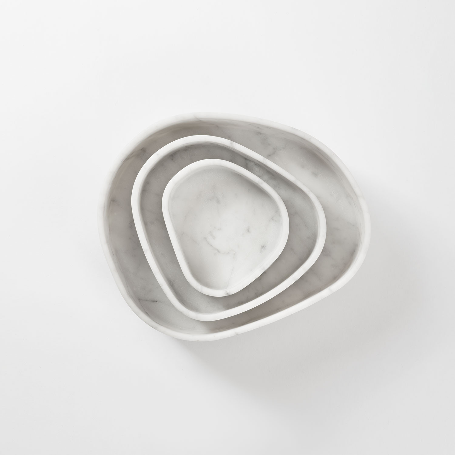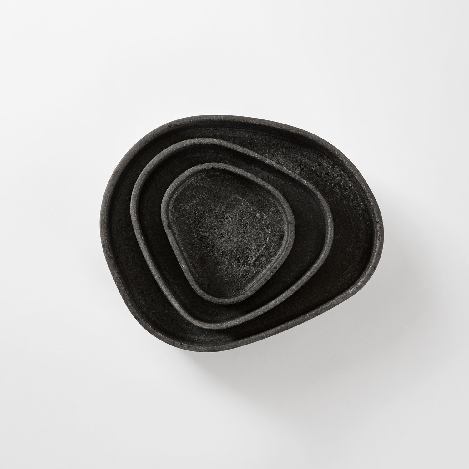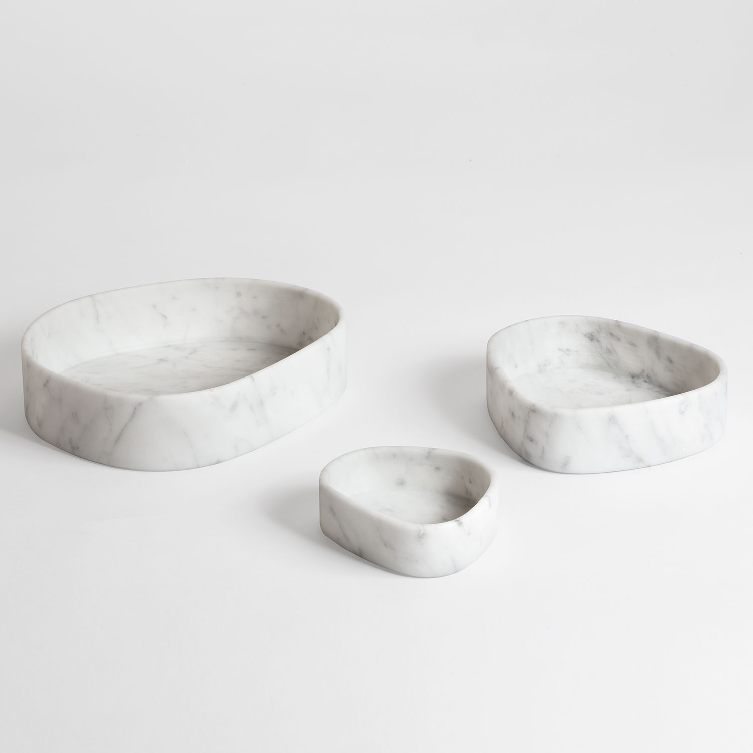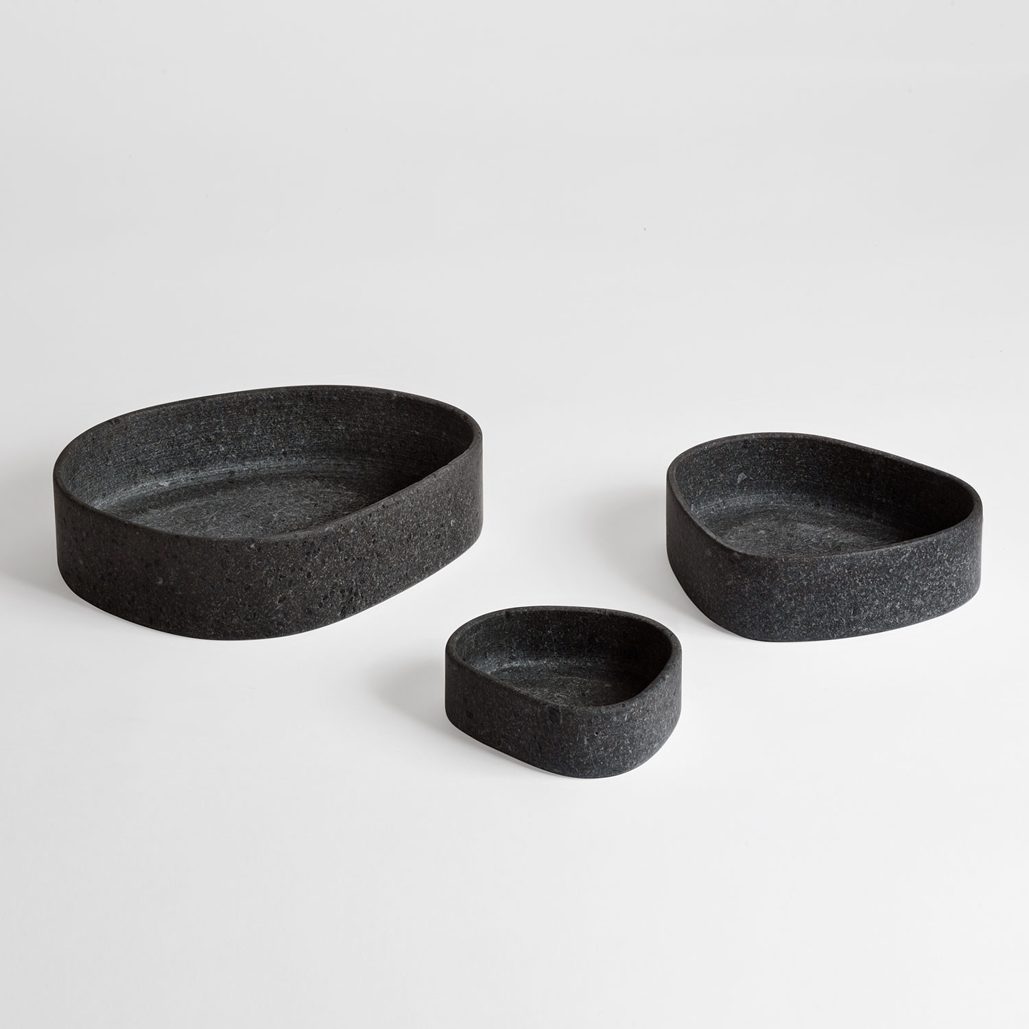 The elegant Egadi set of stacking containers have been expertly made from white Carrara marble or Etna basalt, your choice of luxurious stone. Small islands made of stone create soft, cosy, charming shapes, perfect for keeping your treasures on any tabletop.