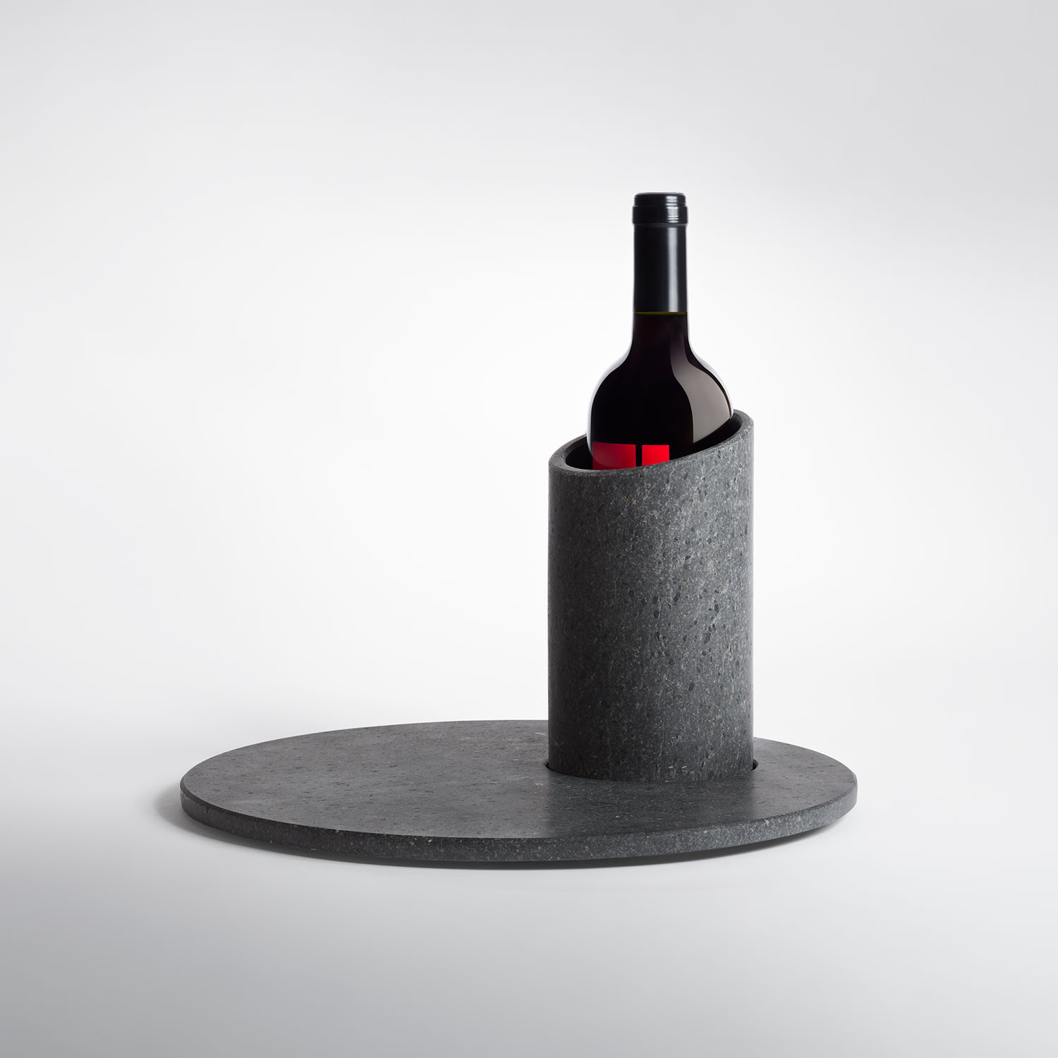 Punto e Virgola is a wine tasting kit entirely made from Etna basalt. It includes two elements — a round cutting board and a cylindrical ice bucket. If placed in a freezer, the ice bucket will retain its temperature for a long time. The board can even be used to complement your favorite wines.