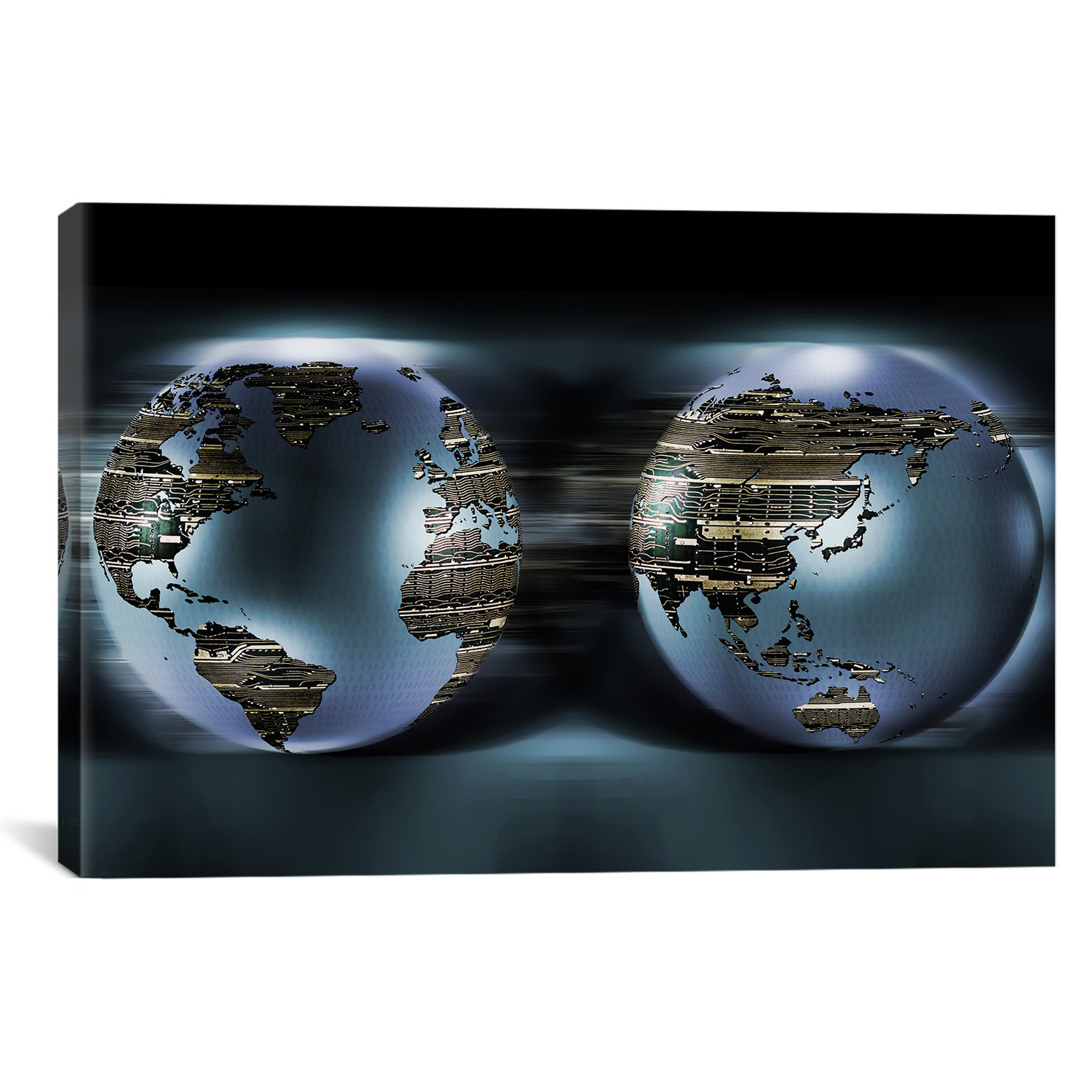 Two sides of earths made of digital circuits // Panoramic Images